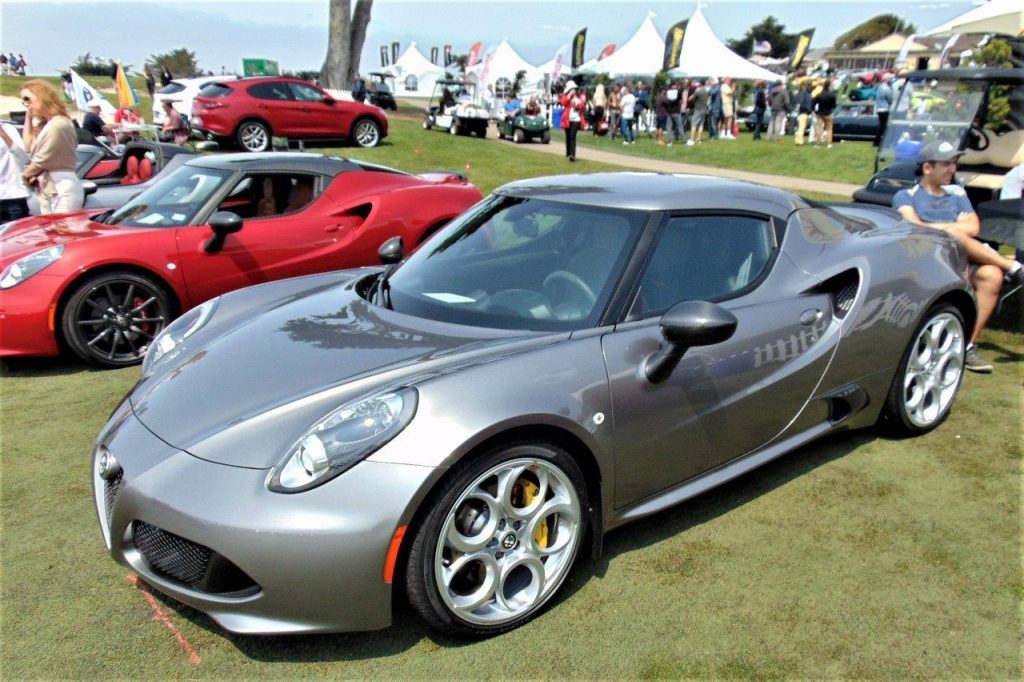 The Alfa Romeo Giulia Super was being recognized at the show. The Super was known as a lightweight four-door with a strong engine. It appeared in various iterations from 1962 to 1977. I soon found three 4Cs side by side, one of which was a grey spider with the others in red and also grey.