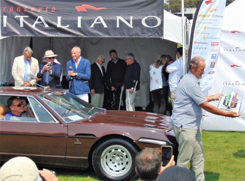 I looked in the direction of Valentino Balboni, but he was still engaged in conversation with the same fellow. This year I would have to settle for his on-stage appearance where he would present the second annual Valentino Balboni Award to a brown 1973 Lamborghini Espada III (1968-78).