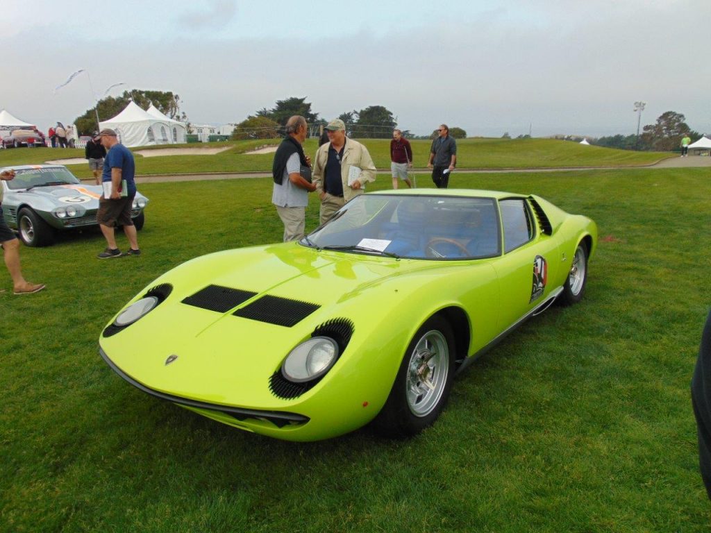 Lamborghini was nearest to the gate that I entered, so I began my day there. The bulls were not hard to miss with their extravagant styling, often bright, almost delicious metallic colors, and sex-appeal. Directly in front of me was a lime-green Miura (1966-73), one of the first two-seat, rear-engined, top-end sports cars to be produced.