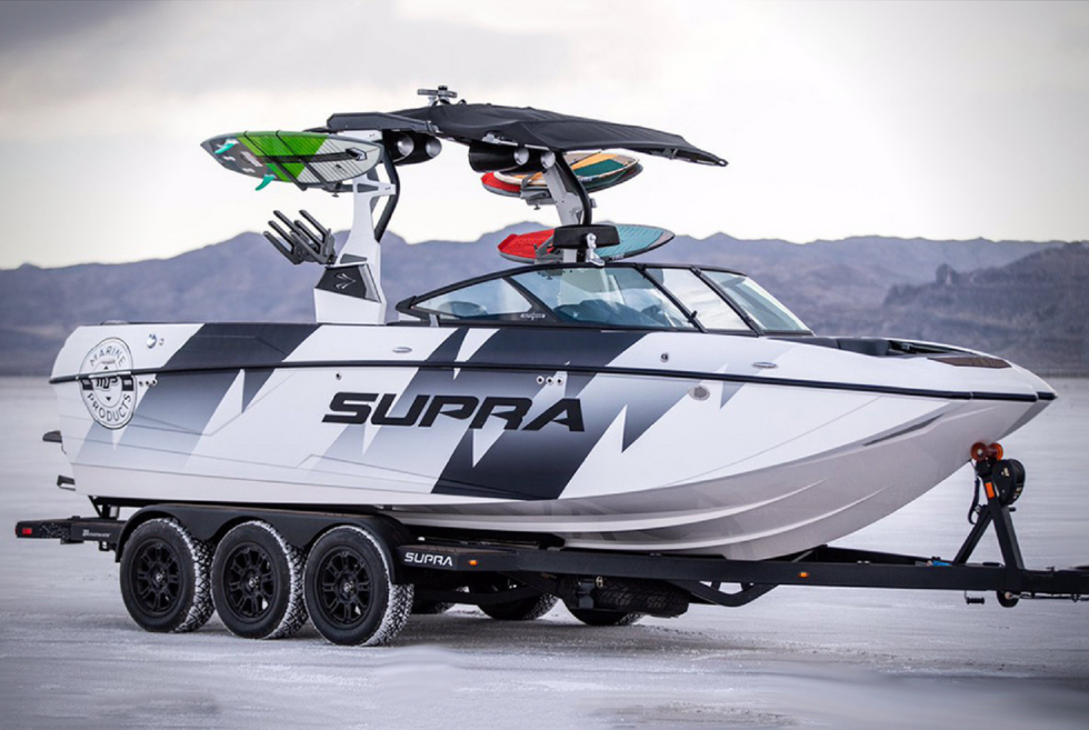 Ken Block is a flamboyant professional rally driver who is not known for doing things the proper or normal way. As if his day job didn’t involve enough exhilaration, when he decided he wanted a brand new boat, he teamed up with Marine Products and Supra to opt for a classic Supra SL wakeboard boat.