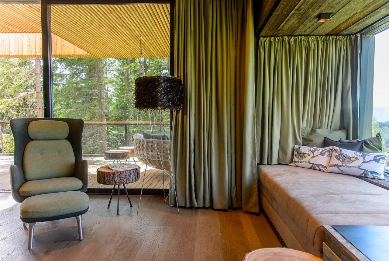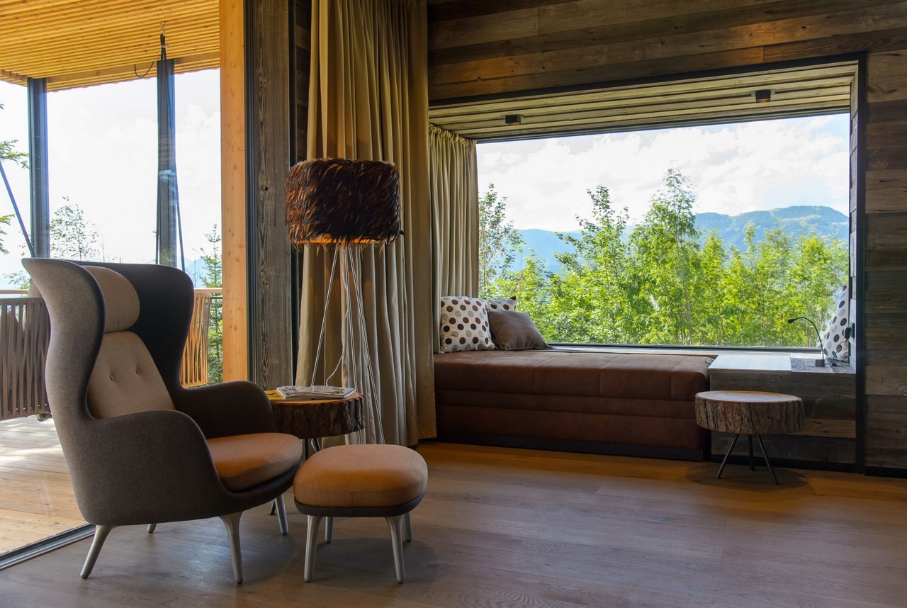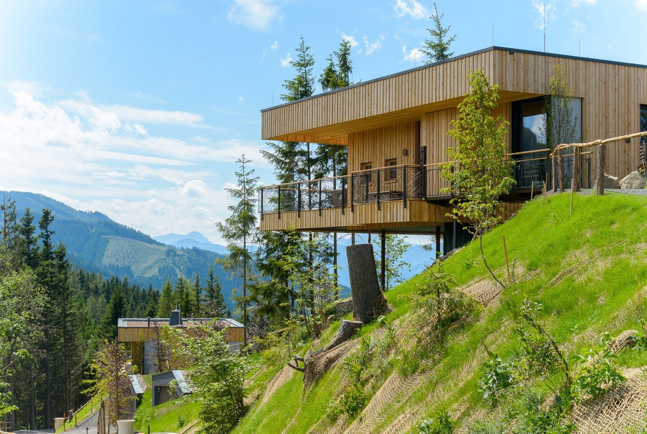 Inspired by bird nests, the Deluxe Mountain Chalets in Styria, Austria, are elevated above the ground on top of the crests, offering impressive views and a floating experience to the occupants.