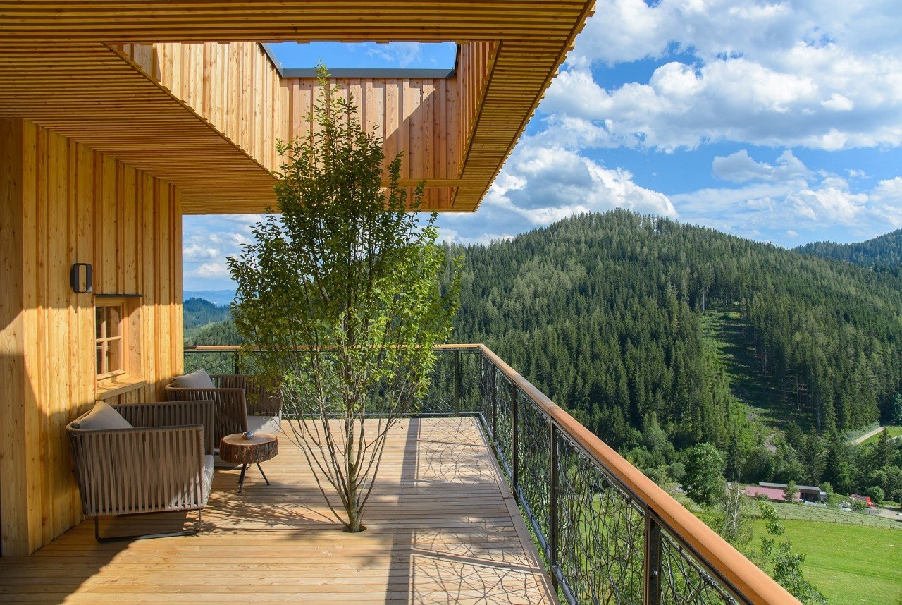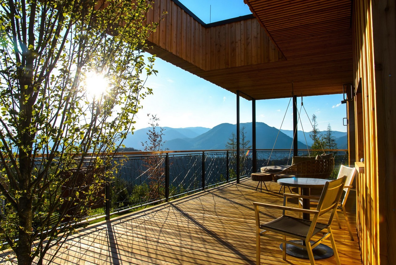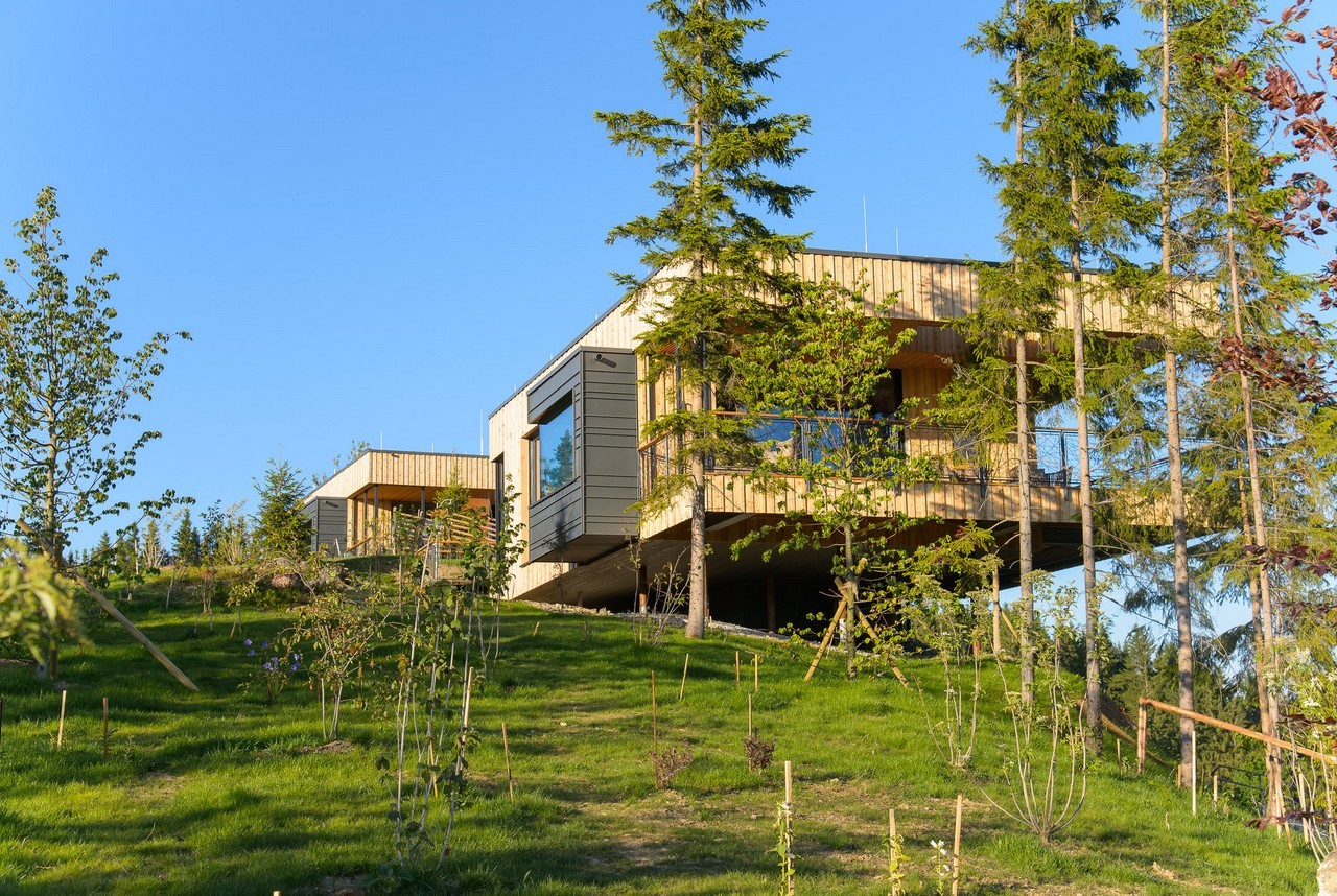 Inspired by bird nests, the Deluxe Mountain Chalets in Styria, Austria, are elevated above the ground on top of the crests, offering impressive views and a floating experience to the occupants.