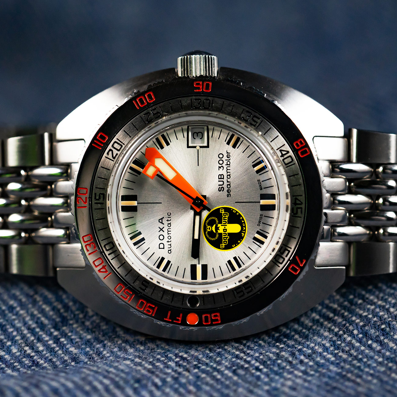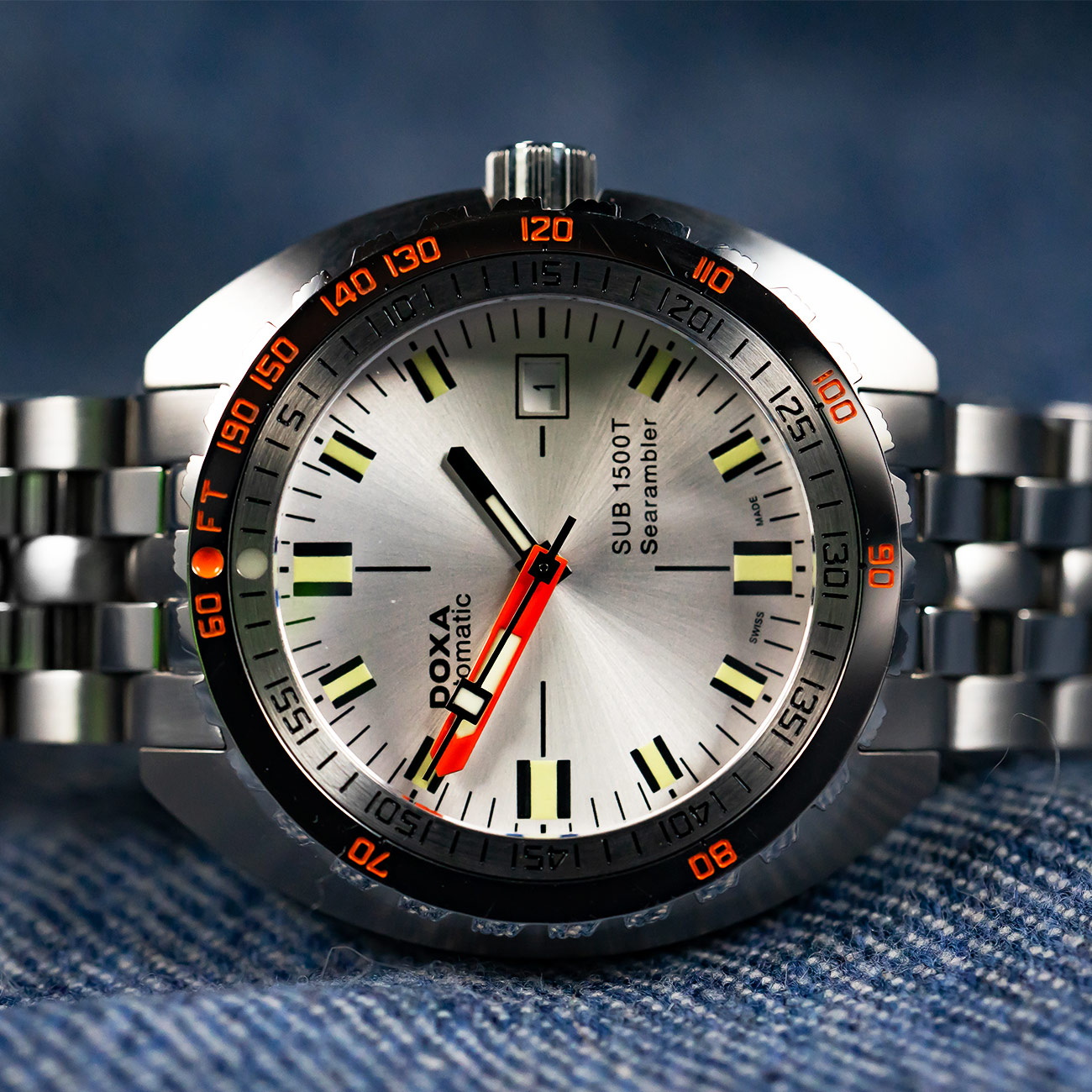 Fit: As Doxa claims, the SUB 1500T wears way more like a 43mm model due to the case shape. I normally can’t wear a 45mm watch, but this one feels perfect on my wrist. The added weight is going to be a matter of preference, and is really only noticeable when compared to the smaller 300.
