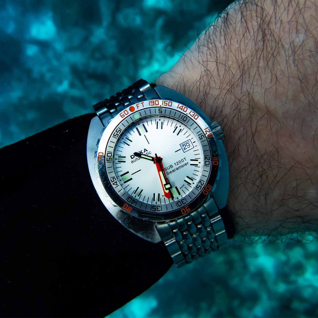 The downside of direct-to-consumer sales is that we don’t get to try things on before buying, and with watches this is especially frustrating, because fit is such a personal matter. This conundrum has plagued fans of Doxa watches since the company revived itself in 2002 and started re-issuing some of the funkiest function-driven dive watches ever conceived. Thankfully, I was finally able to get Doxa’s three primary models together and bring them SCUBA diving in Bonaire, a Dutch island in the West Caribbean. This comparison shed a lot of light on the fit, finish, and overall vibe of the quintessential Doxa divers: the SUB 300, SUB 1200T and SUB 1500T.