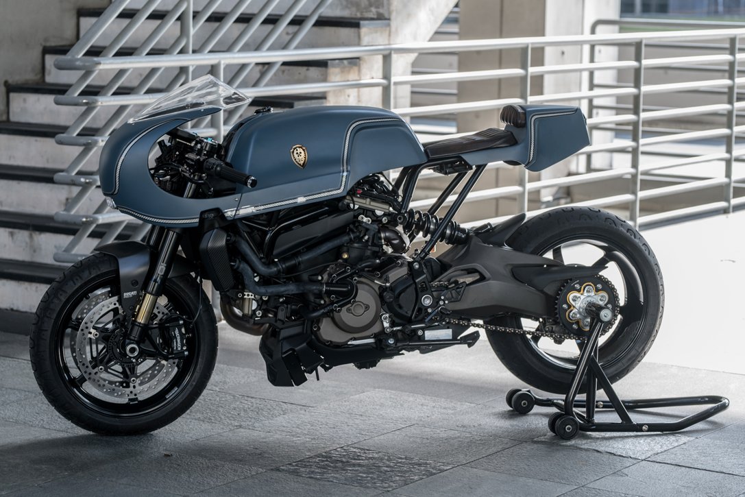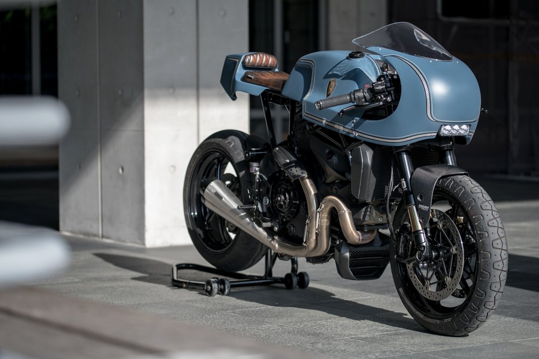Instead, he set out to re-interpret rather than replicate. He drew inspiration from Paul Smart Ducati models with their iconic half fairings. Rough Crafts used the Ducati Monster 1200s model as a starting point, rebuilding the bodywork from scratch and implanting 48mm Öhlins forks to thicken the bike’s bones. Then they added six-spoke wheels, 17-inch alloy units from Wukawa Industry with Pirelli Phantom Sportscomp rubber, a tire that blends a classic tread pattern and modern tech underneath — just like the bike itself, a mesh of modern and classic.