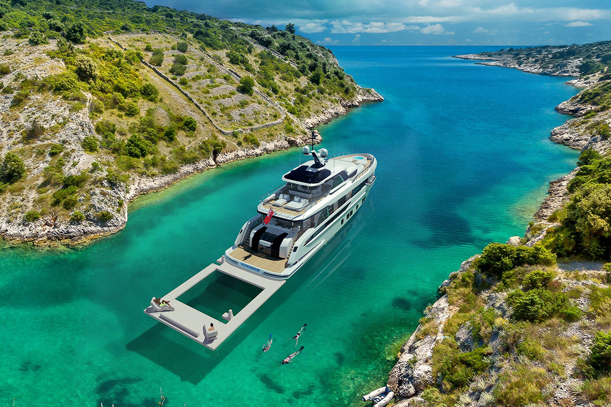 It was not long ago when we featured the Columbus Yachts Gigayacht. The upcoming concept plans to build a luxurious vessel that measures around 120 meters. Additionally, it will reportedly feature a waterfall cascading down from one pool to another below. Likewise, there’s no shortage of high-end embellishments spread around the ship. Moving on to something smaller yet lavish nonetheless, here we have the Dynamiq Global 330.