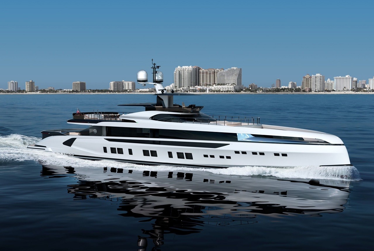 The all-new Dynamiq GTT 165 is the world’s first foiling superyacht. This 164-foot sporty watercraft is equipped with two underwater foils that lift the hull up, allowing for decreased drag and higher speeds, making this the only yacht in its category capable of crossing the Atlantic at up to 25 knots.