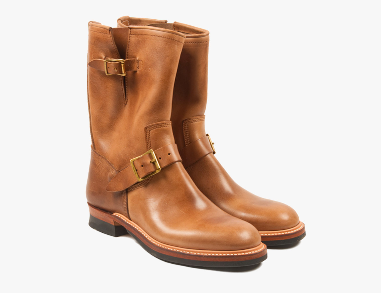 Standard and Strange calls these the “absolute best in engineer boots,” and for good reason. They feature Horween Chromexcel leather, Japanese steel shanks, British Goodyear storm welting and brass-coated steel buckles from Tokyo. Made in Japan, the are designed around a ‘50s-style last that has a tapered shape with no toe bump.