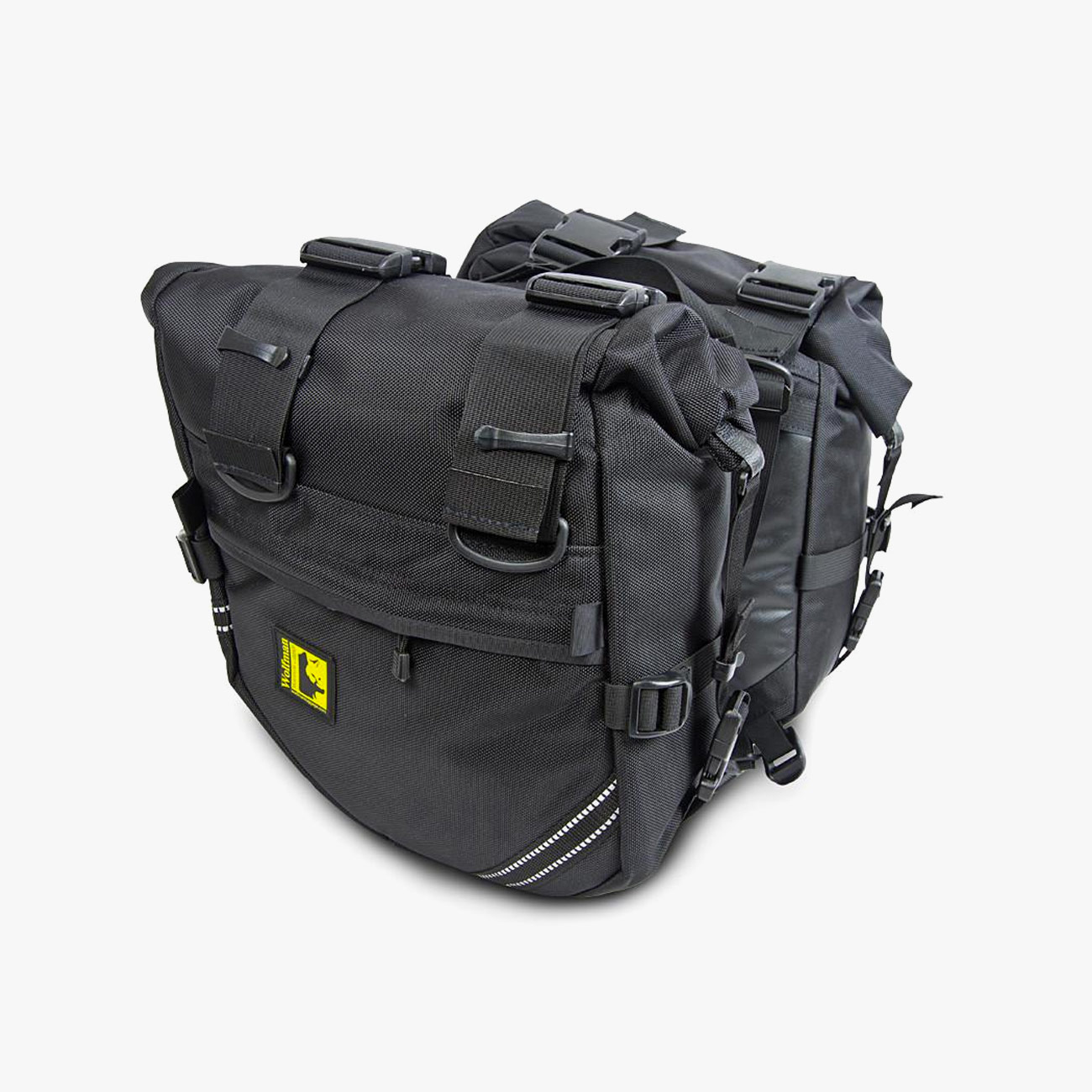 Hard saddle bags work for big adventure bikes on long tours but the extra weight and size play against you on the trails. Wolfman Enduro Dry Saddle Bags are quick to install and since they’re soft and collapsable, won’t do damage to your bike if you go down. Just don’t store anything fragile in them — think extra layers and soft gear.