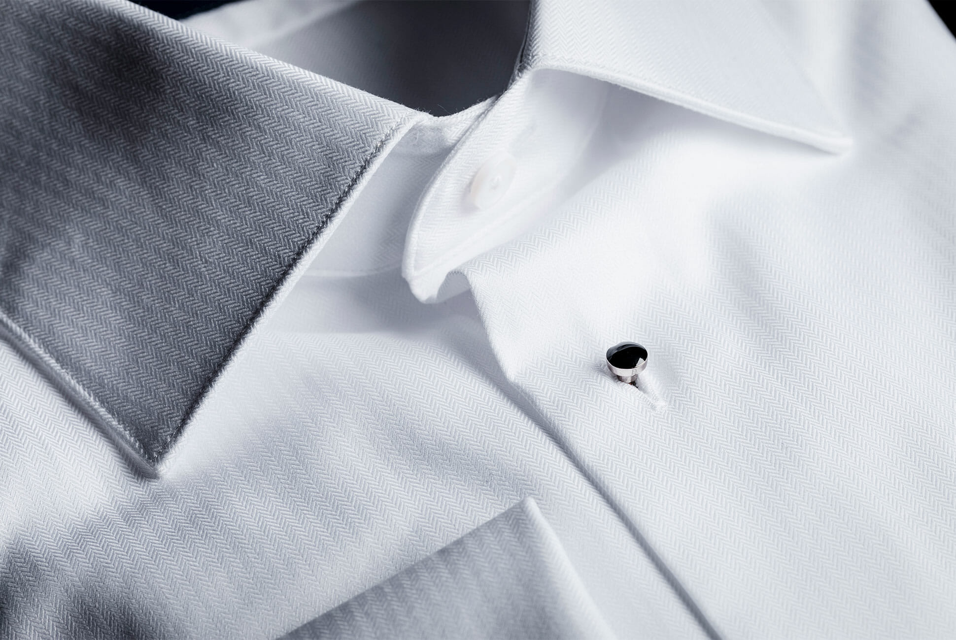 In terms of tuxedo shirts, Aquino said, there are three main things to consider. “Collar structure and how that ties in well with the bow tie; the cuff of the shirt; and the button structure of the shirt.” Though I anticipated Aquino’s answer, I asked about alternate shirt colors: Is it ever okay to go with anything but a white shirt? “Under no circumstances.”