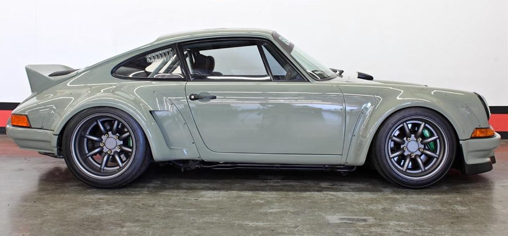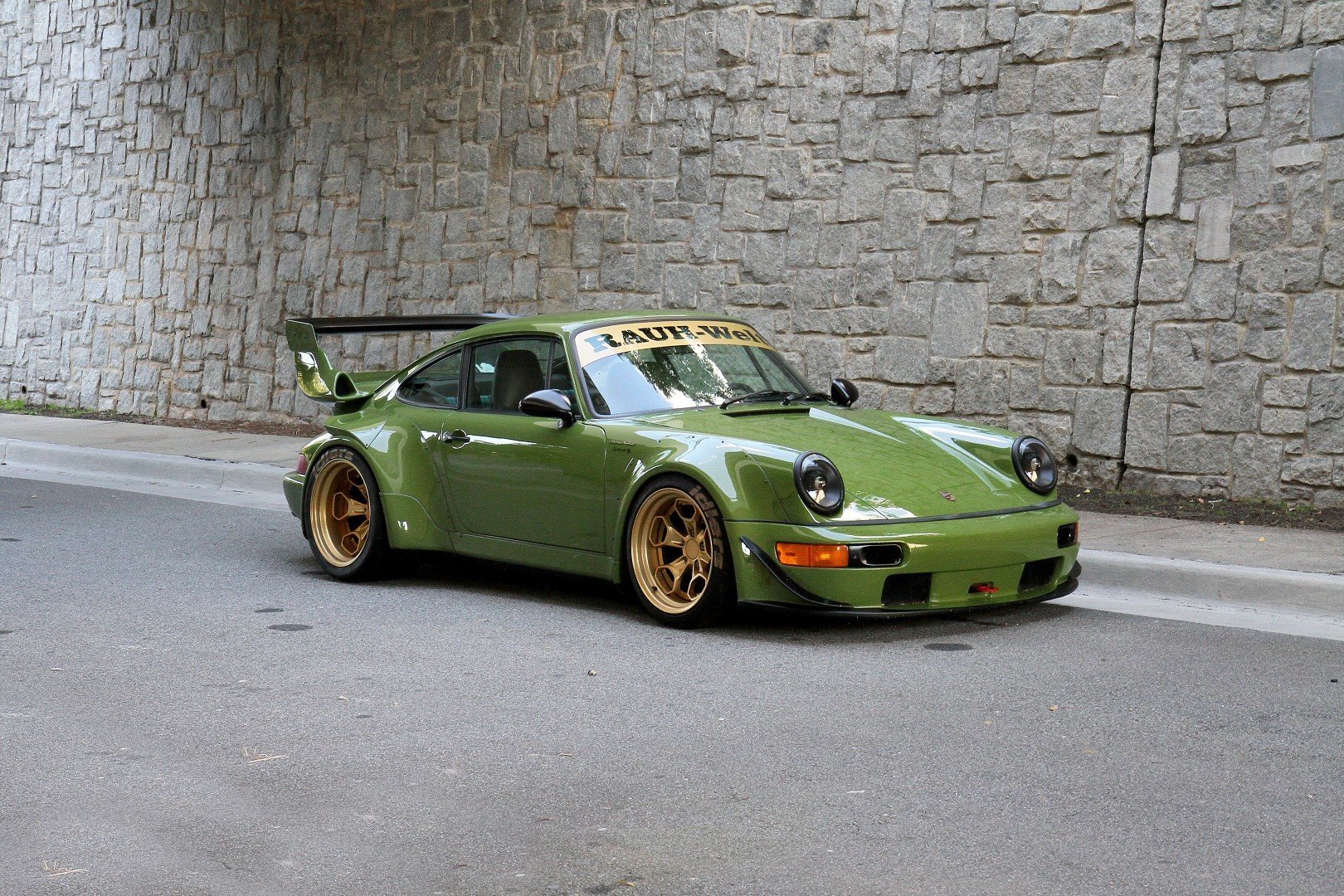 Porsche RWB #1 in Mignonette Green. Wide body hand crafted and installed by the famous Nakai-san of Rauh-Welt Begriff. This particular 911, known as Pandora One, was the first RWB Porsche built in the United States. Unlike many RWB’s, this car has the performance to back up it’s looks. A 3.6L flat six engine with a custom FFTEC turbo kit provides over 450hp. This RWB has been backdated to the styling of an early long hood 911.