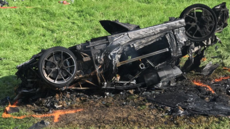 The Rimac left the mountain road, cartwheeling down a steep incline and narrowly missing a house before landing on its roof and burning. Hammond crawled from the wreckage and suffered a fractured knee.