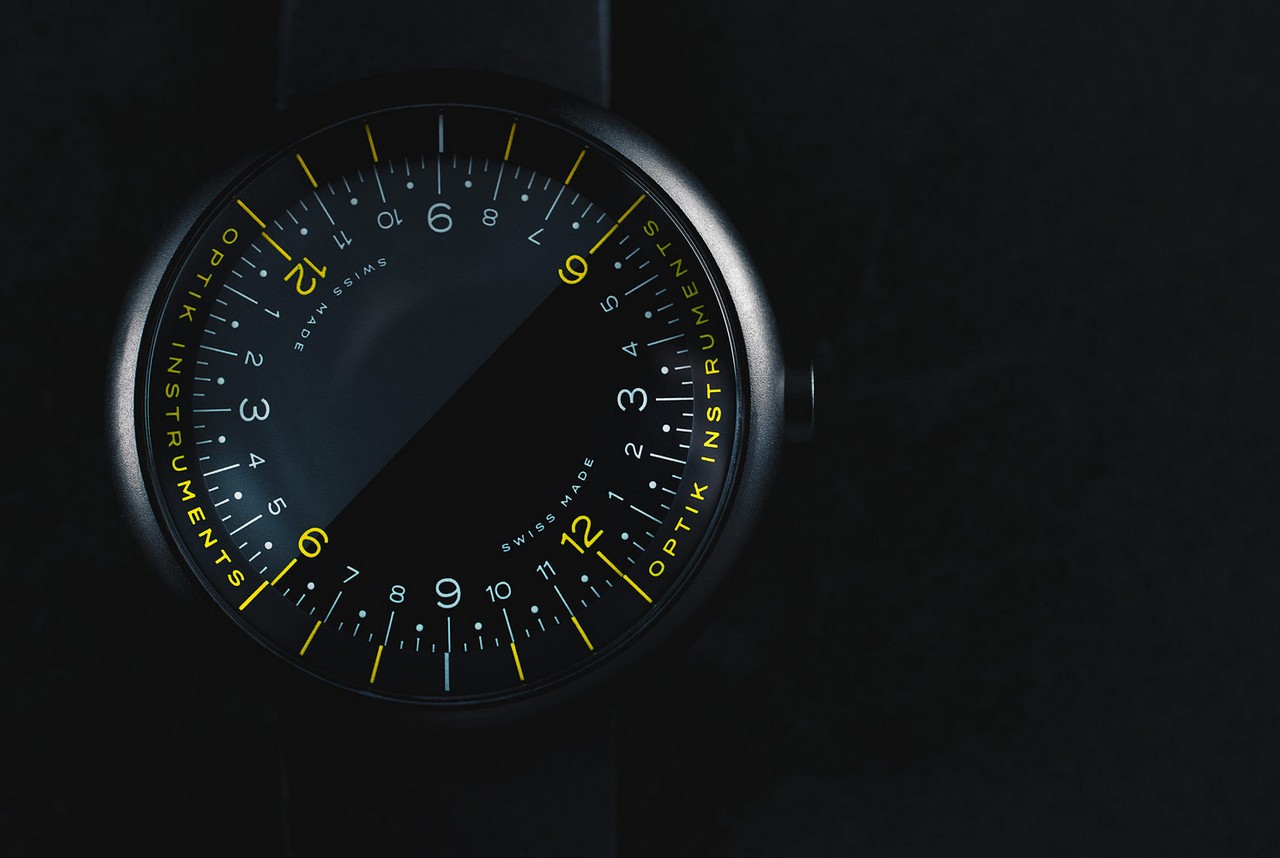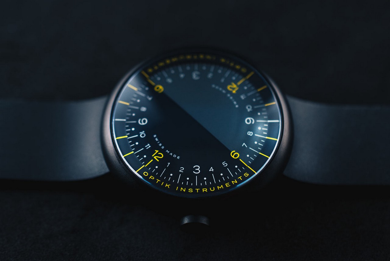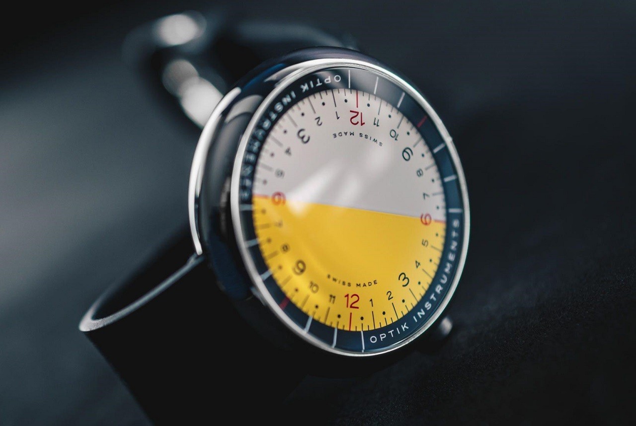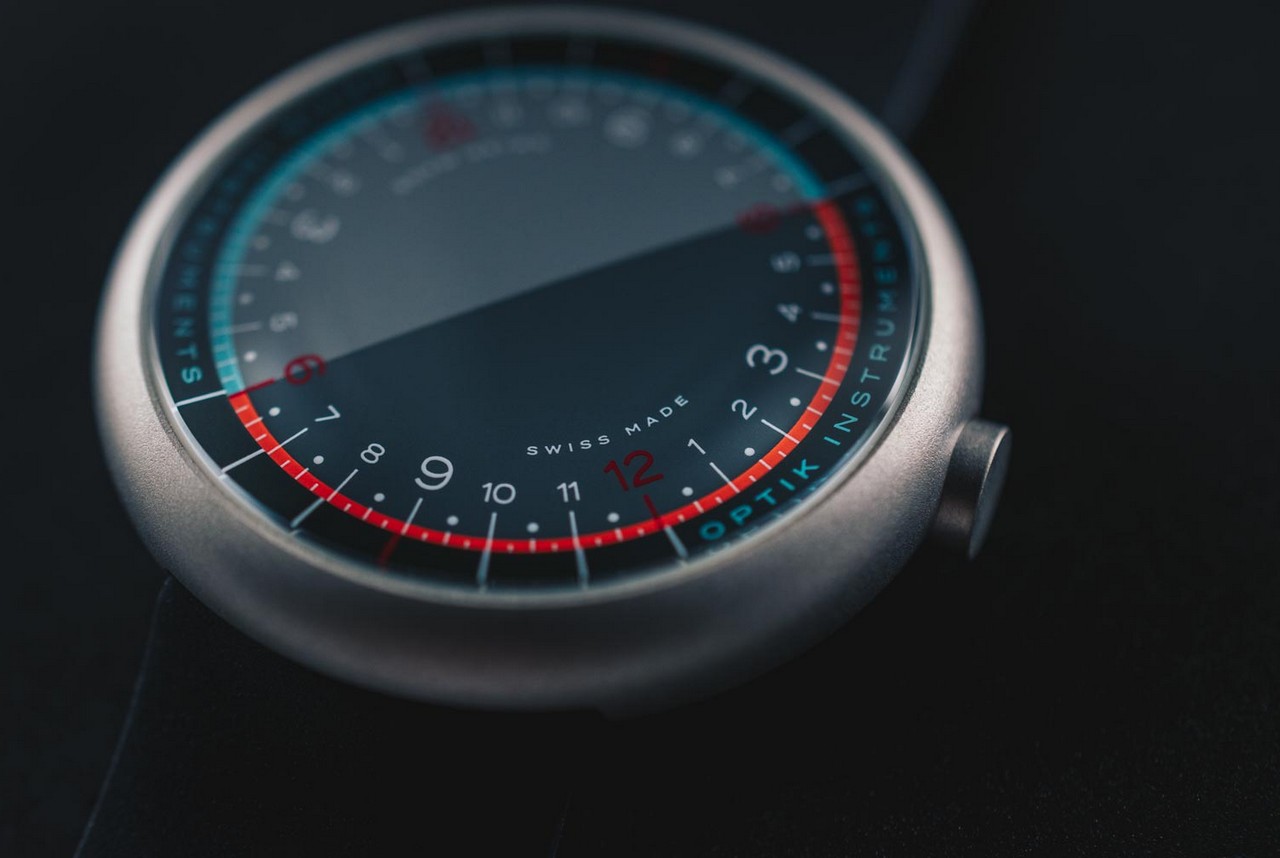 Created by OPTIK INSTRUMENTS, a young British design house “driven by a slow-living culture,” the striking watch features a smooth, rounded stainless steel case with a domed sapphire crystal. The integrated crown adds to the seamless look, while a battery-powered movement is suspended in the case with a unique engagement frame, allowing the disc to rotate freely and helping with shock resistance.