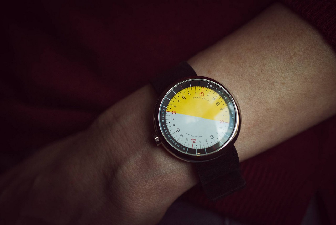 Intuitive, engaging and simple, the HORIZON Watch offers an objective angle on how we tell the time. The beautiful timepiece uses a central disc that completes a full rotation once a day, displaying both the day and night hours, separated by a single line representing the horizon.