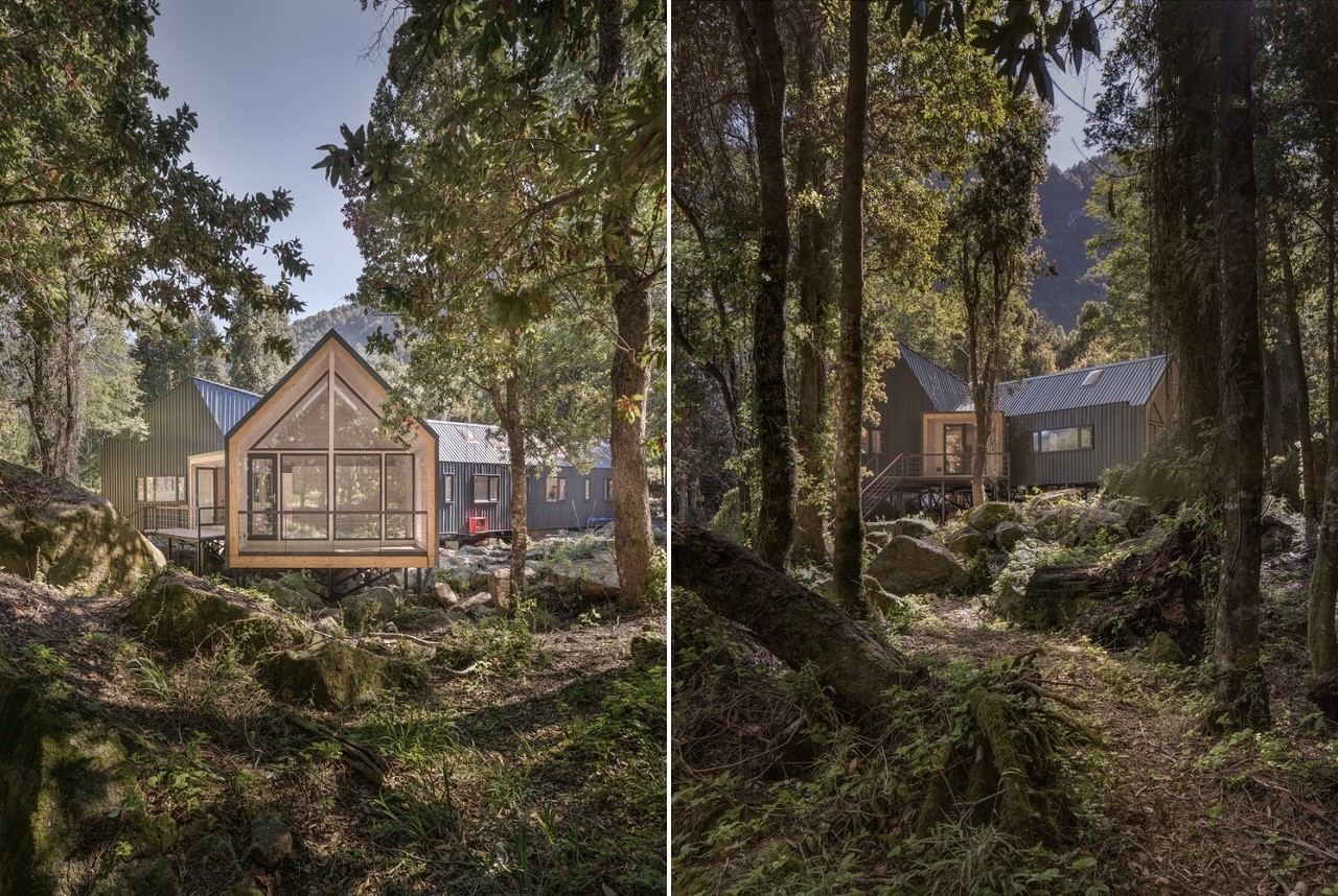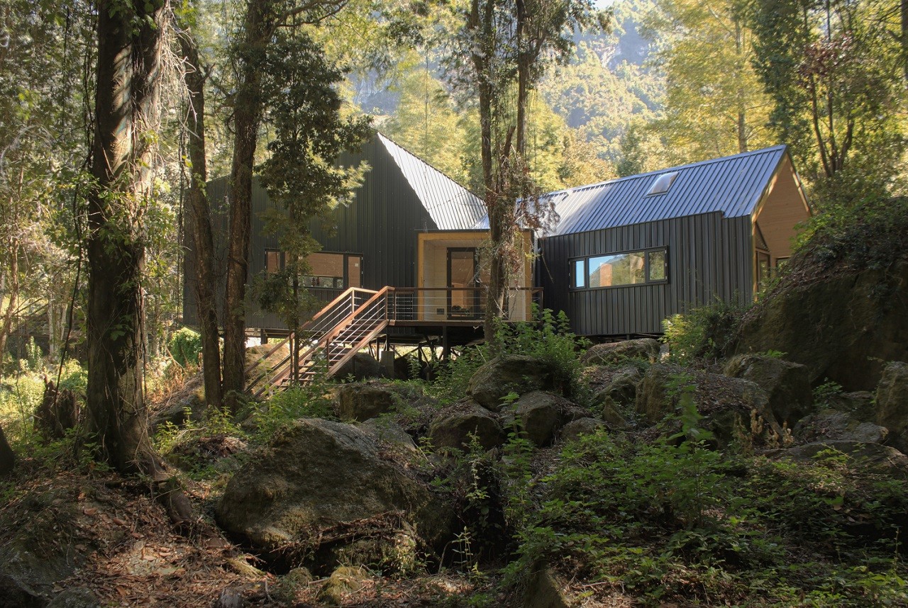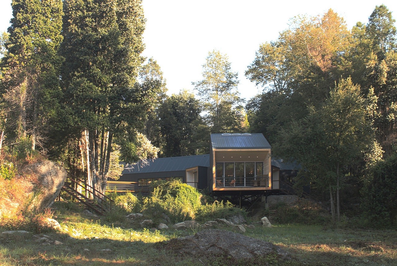 Surrounded by a dense forest and rocks dating from the last glaciation, the House Over The Rocks in the south of Chile is the perfect place to contemplate the boundless natural beauty and the Andes Mountains in the background.