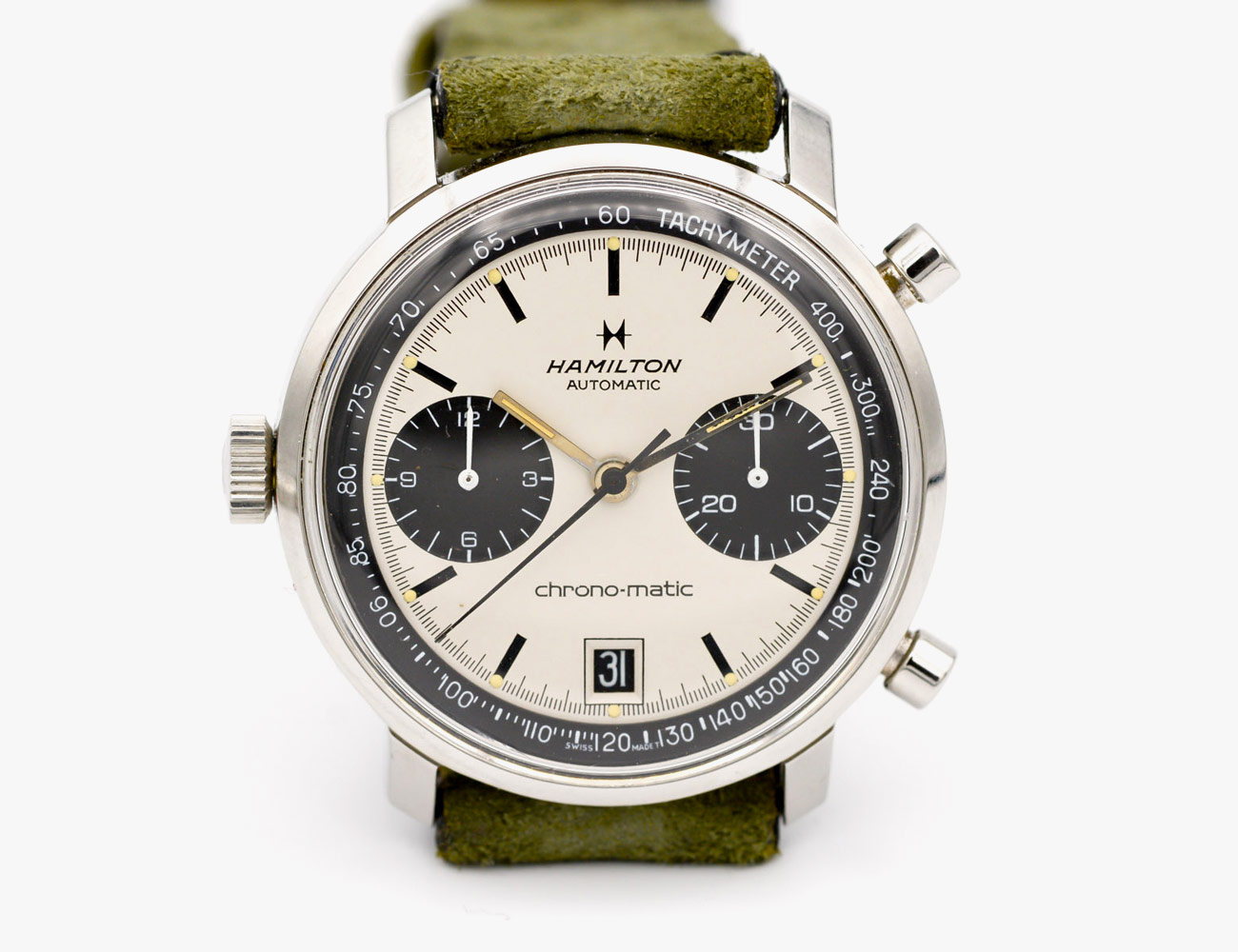 “I think Hamilton is still very affordable compared to Heuer and Breitling — all these other brands are skyrocketing so quickly. The chronographs, they’re special to me. Mainly, specifically, the two-register ones. It’s such a clean design and it’s very affordable and it looks like million bucks. And it’s not pretentiously big.”