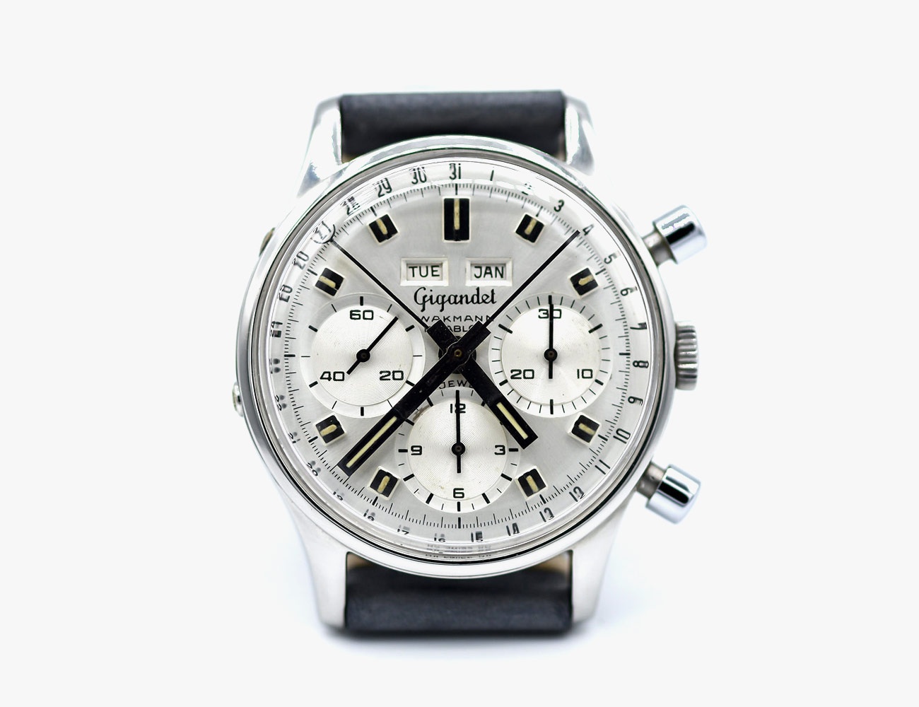 “These are watches from the ’50s to the ’70s — [they’re] still very affordable and [there are] still plenty out there. These are beautiful watches, and they are one of the only companies who went so far on the triple dates. These are really collectable. I specifically like the Gigandet line because they’re a bit more rare and a bit more refined.”