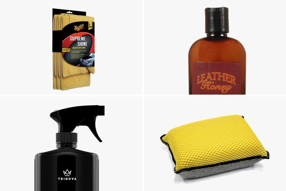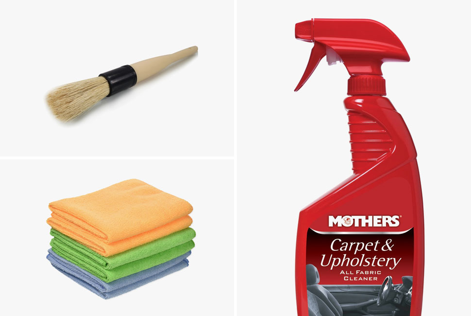 You can clean leather interiors simply by vacuuming out any loose debris, then applying a mild, pH-neutral leather cleaner (harsher cleaners will strip seats of their natural oils) to a microfiber cloth. Rub the cleaner into the leather in a circular motion, then wipe it dry with a clean cloth. Once the seats are clean, apply a thin layer of conditioner to the seats using a soft sponge. (Try a spot test in a small, hidden area to make sure it has no ill effects on your car’s leather.) Let the conditioner absorb into the seats for two hours, then buff it out with a clean microfiber cloth.