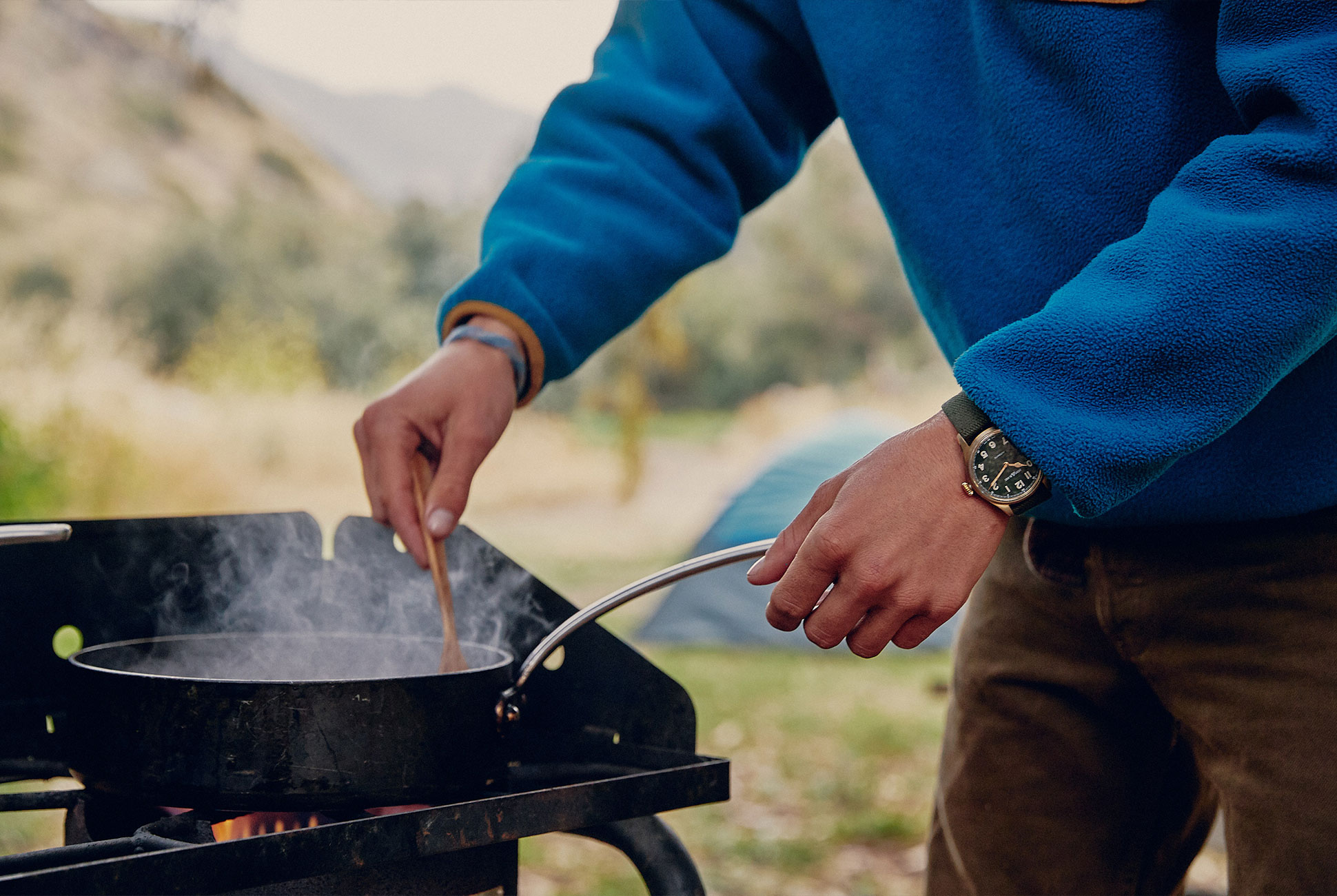 Montblanc’s 1858 collection was inspired by the adventures watches made by Minerva in the 1920s and ‘30s. The Automatic Limited Edition homages the classic stylings of that brand — cathedral-shaped hands, railway minute track — on a bronze-and-green canvas that’s right at home in the wild. Its green NATO strap is the perfect finishing touch for a watch that an adventure guide would love. Buy Now: $3050