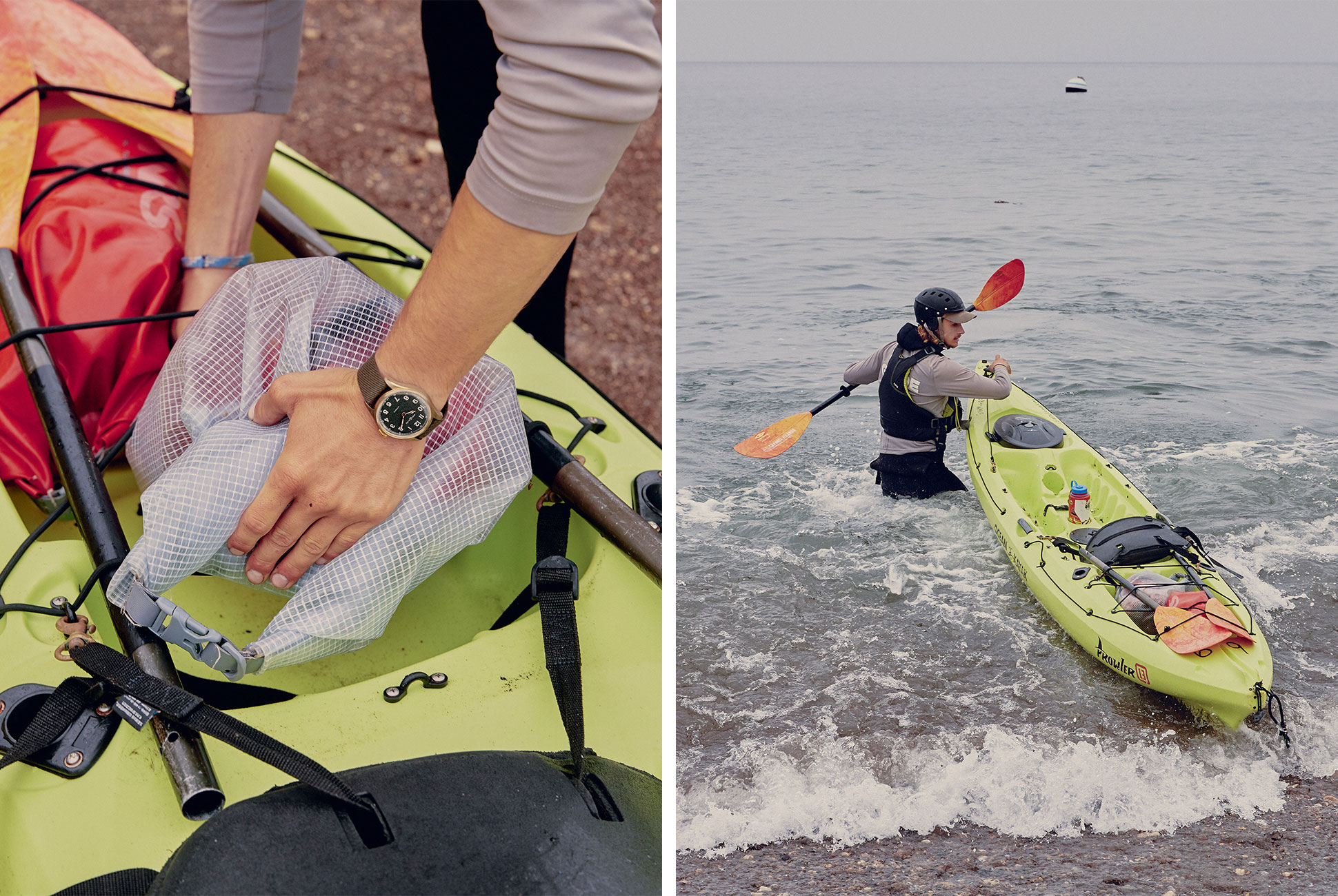 His first so-called bad spot worth visiting is the aptly named Boat Wreck cave. The tide is high, and the swell rolls through the yawning entrance, bellowing and belching spray. Here’s the plan: once inside, he’ll hang a sharp right and wait for a small hole in the back of the cave to funnel a swell into a concentrated wave that he’ll surf through the cave and out its side entrance. “But there’s a big space against the wall to the left — I avoid that because there’s not enough room for both a kayak and a person,” he says. “If you have to bail out, you bail to the right. Oh, and sometimes there’s another wave coming in while you’re going out, so you might get whomped from both sides.”