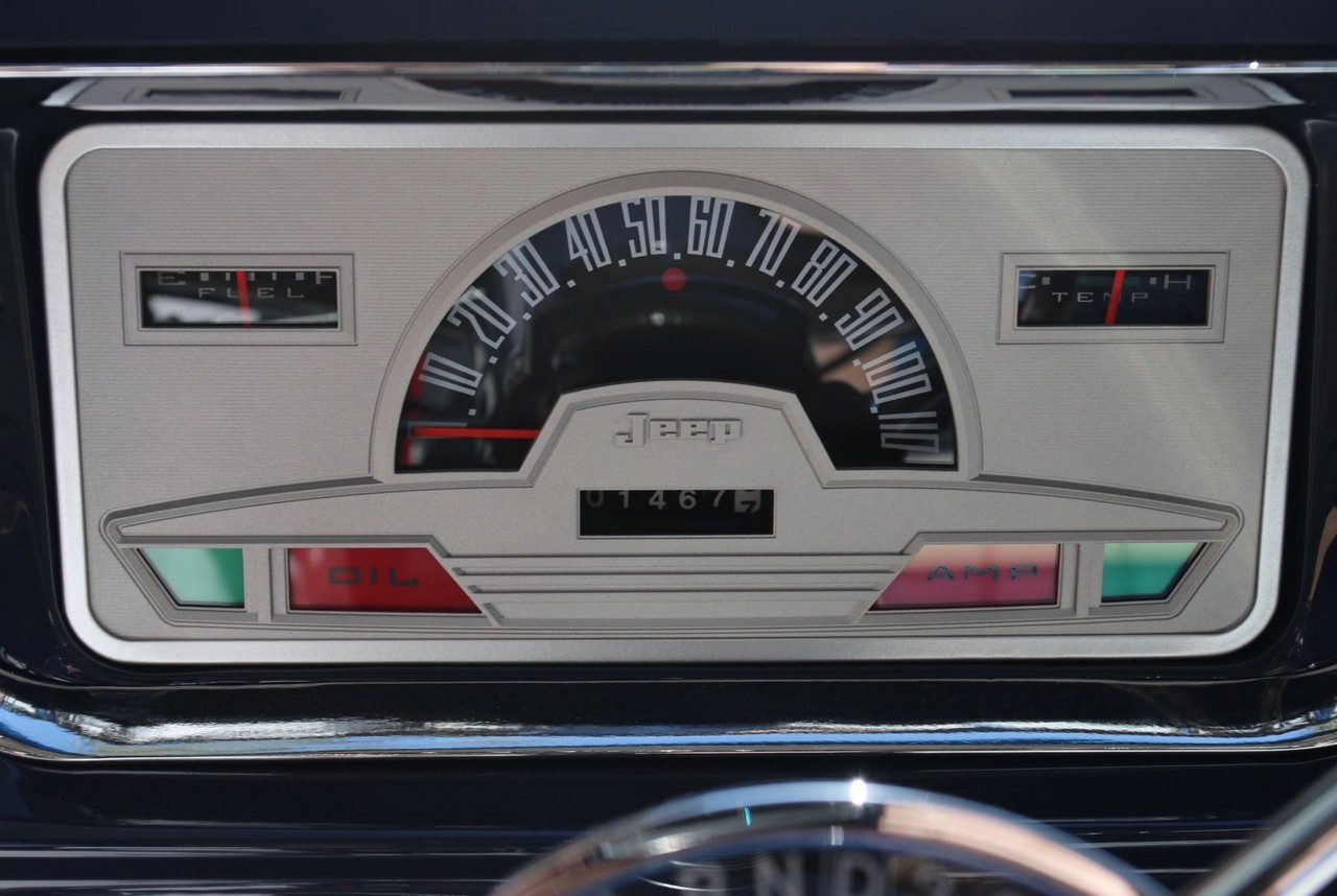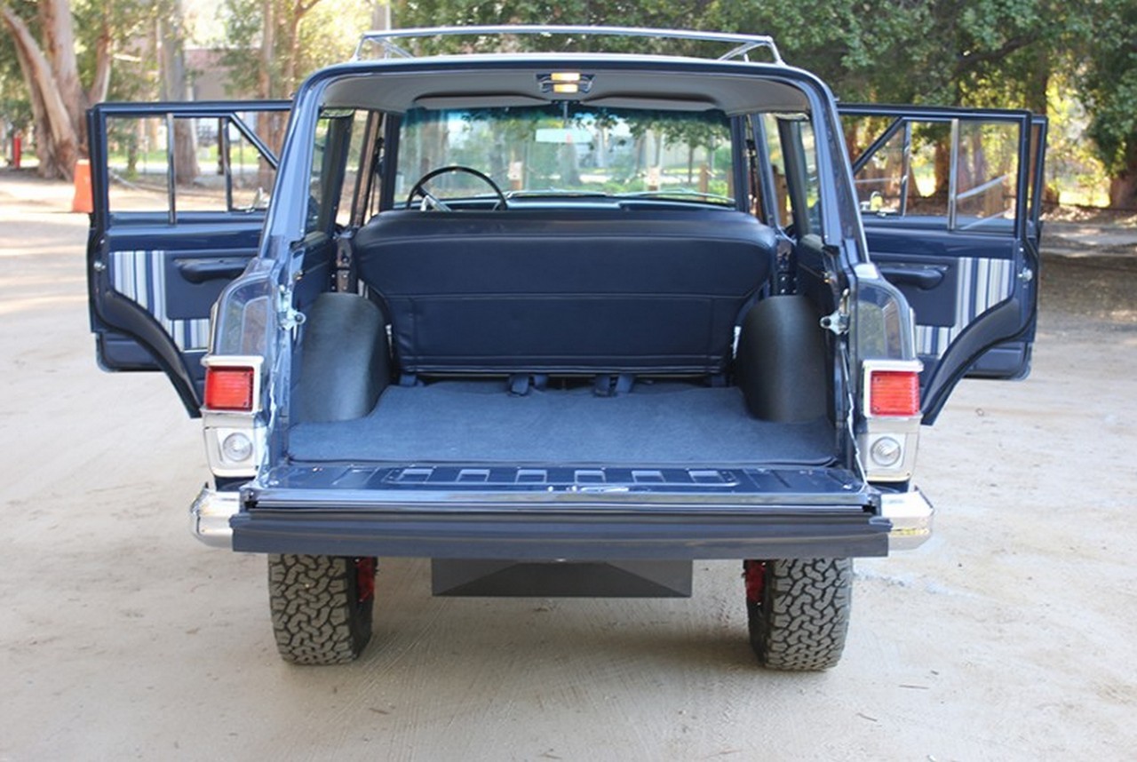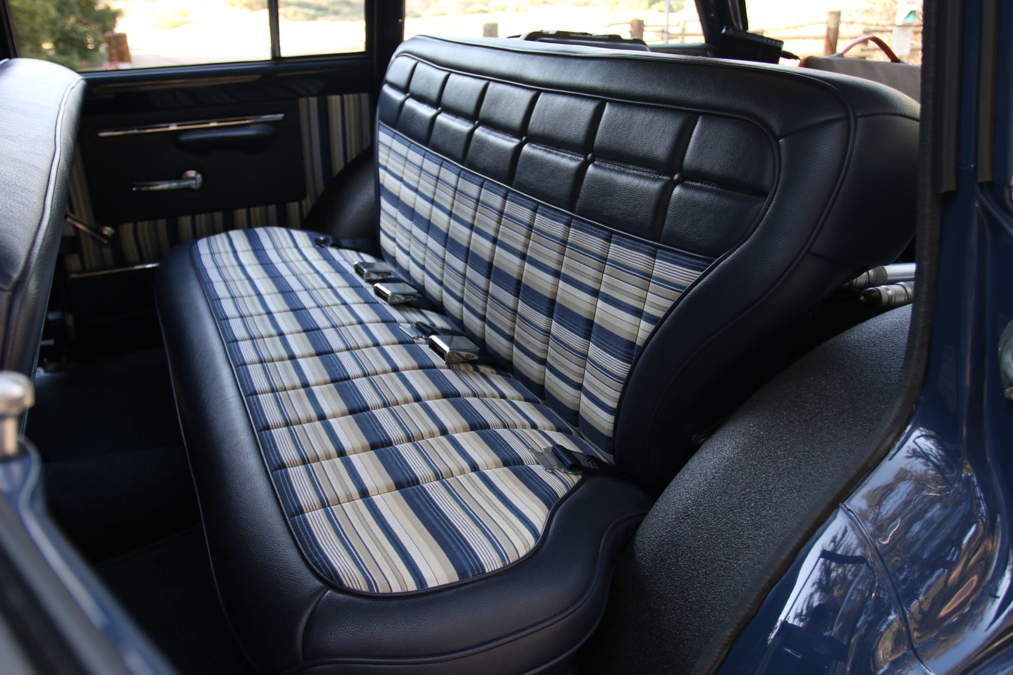 Inside, the offroader sports a cleaner dash with cool metal knobs inspired from the originals, a restored steering wheel, Bluetooth audio system, interior cargo lights, and quilted-pattern seats in high-quality Knoll fabrics. Finished with a fresh coat of paint and a sweet-looking side trim and wood insert, this truck oozes pure vintage style and is ready to put many more miles under its wheels.