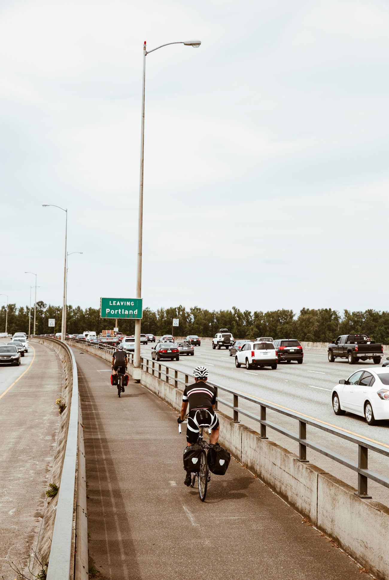 On our first day, we left the city later than planned, following a bike path bisecting a highway out of Portland. But soon we were on a forested two-lane heading to Hood River, sixty miles away, where Thunder Island Brewing Co. waited just outside town along the Columbia River Gorge. We traced the path of the river, on its less-traveled, hilly northern shore. Rob pushed up the rollers. Justin stopped often—for pictures, he claimed. I fiddled with the Goal Zero solar panel attached to my rear panniers, and tried to consume some electrolyte goo when Rob started to pull ahead. It tasted awful, even after a pull on a fruity vape pen we’d — legally, of course — brought along. The sativa helped a bit with the ups, I thought, and soothed a few early-stage squabbles. A typical, context-free exchange between me and Rob: