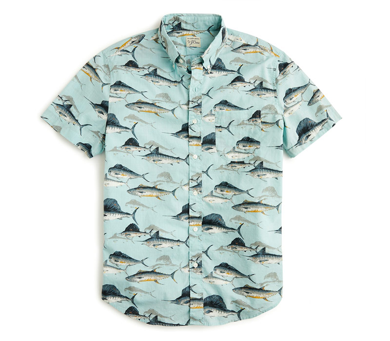 Short-Sleeve Slub Cotton Shirt in Sporting Fish Print $55 $27