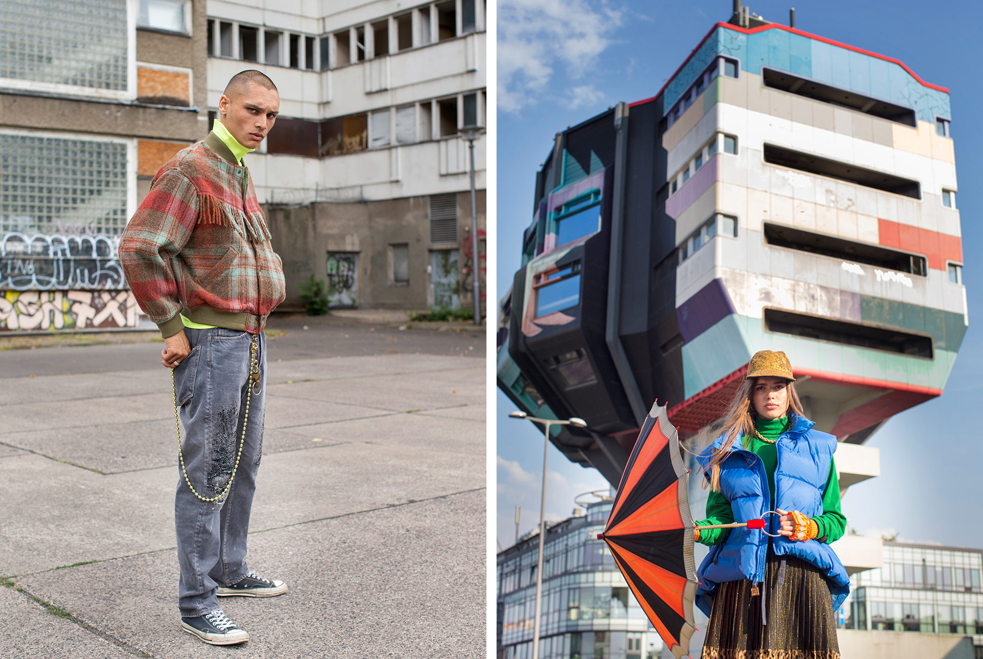 Q: While urban locations aren’t frequent in Kapital’s books, you have shot in Paris, London and NYC for the brand. What made Berlin different and how did the architecture and environment inform the photography?