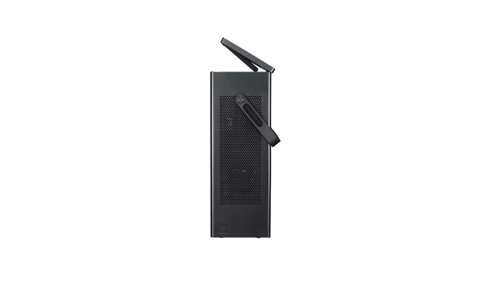 Its innovative design allows you to position the HU80KA in different ways. You will find a metal handle set close to the projection lens. Its primary use is for transporting this burly device around, also doubling as a stand when the projector is horizontal. The top opens to reveal an adjustable mirror that reflects the image when it’s vertically positioned.