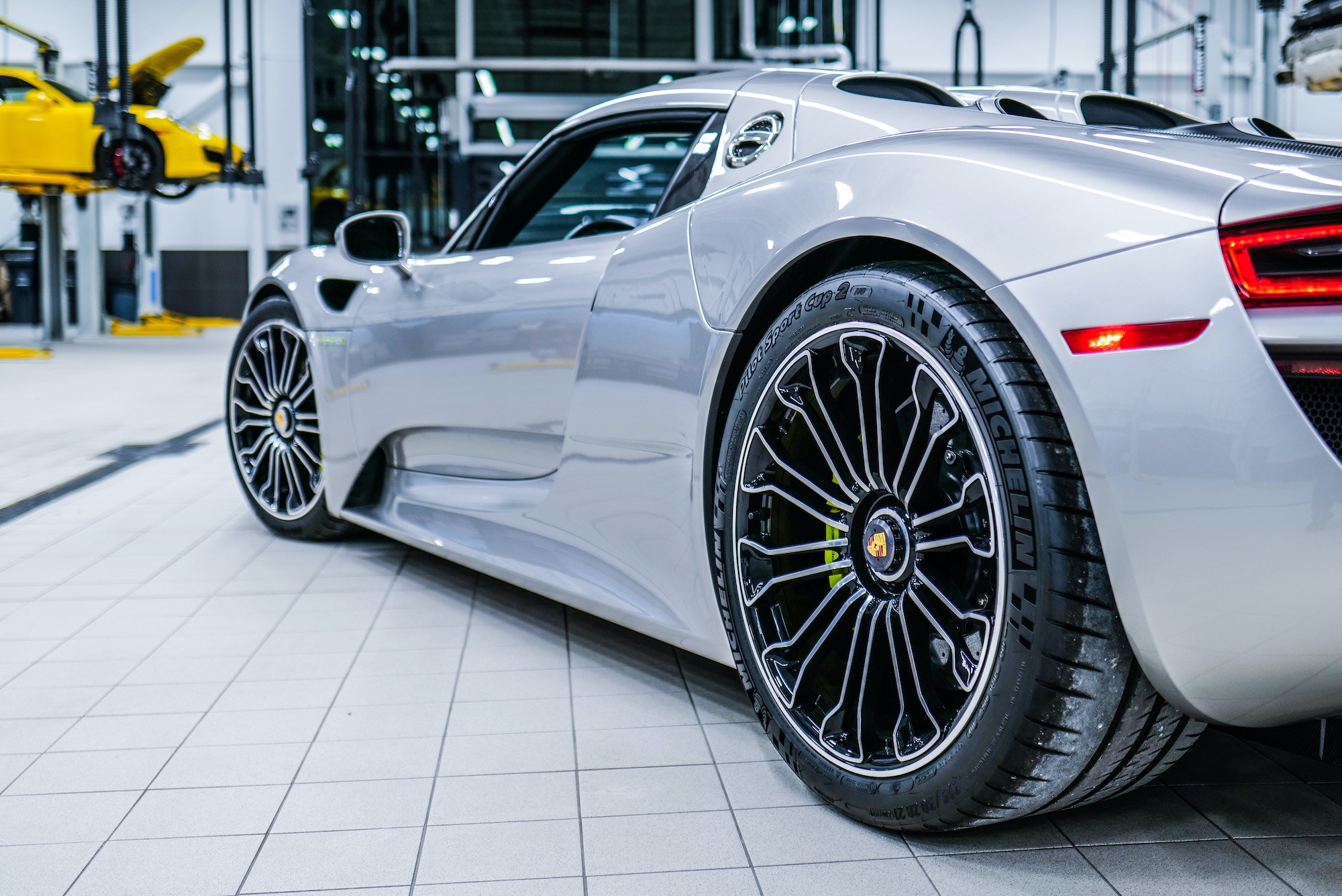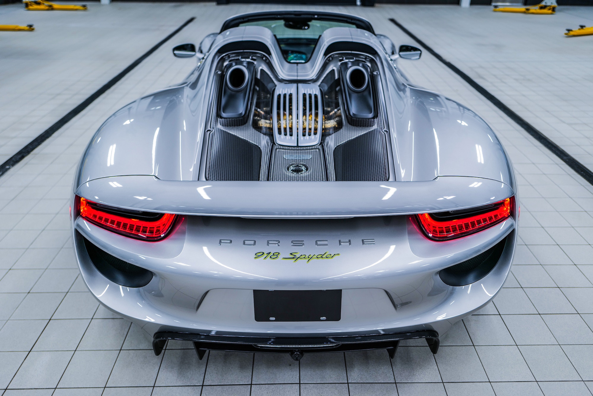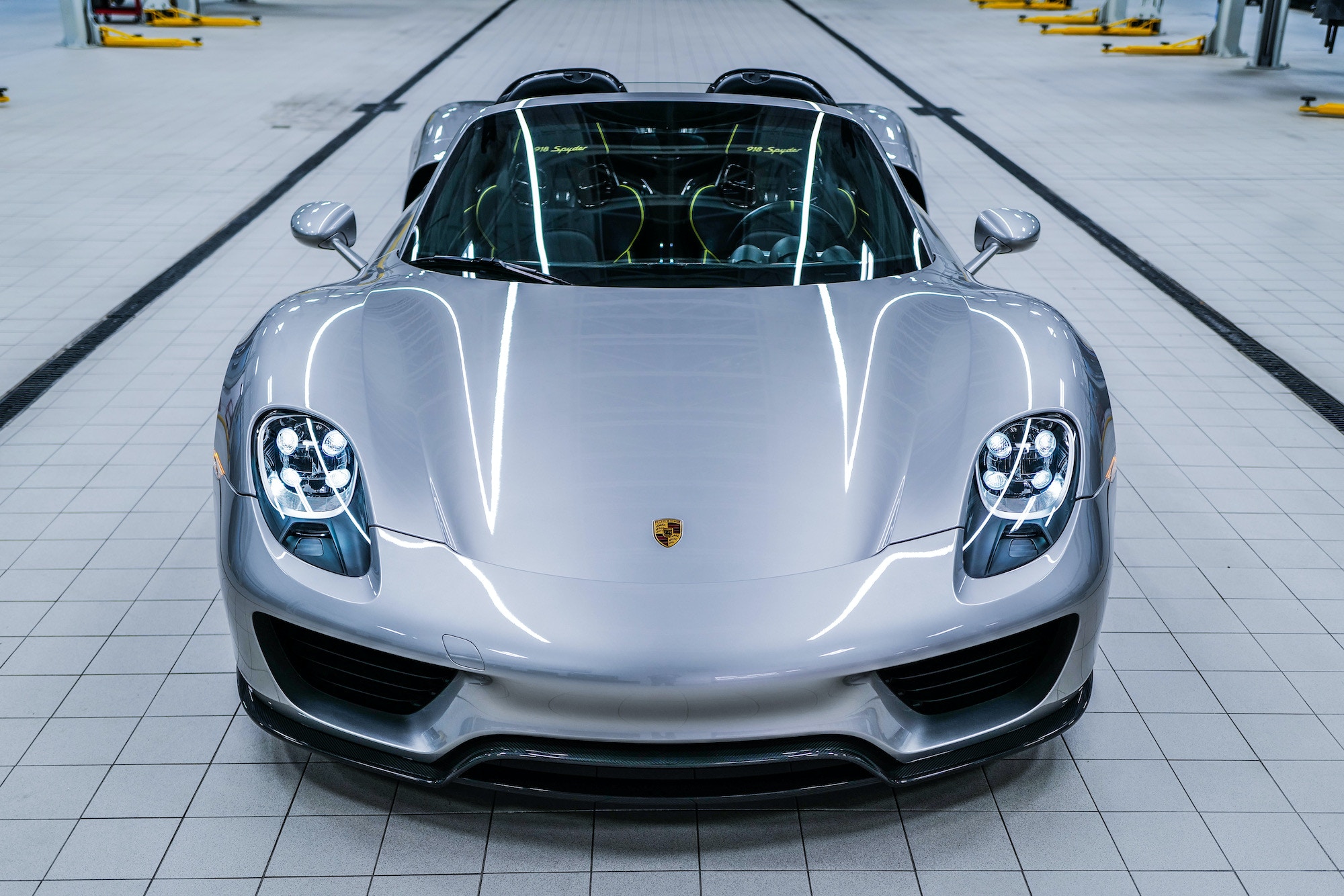 The plug-in hybrid hypercar is one of only 918 units built. Under the hood of this gorgeous Porsche hypercar is a 4.6-liter naturally aspirated V8 engine with an electric motor for each axle. It can produce a total of 887 hp and 944 lb-ft of torque. The engine and rear e-drive motor are matched to a seven-speed PDK dual-clutch paddle shift transmission. The front axle is connected to the front e-motor with an electric clutch coupling, so it makes the hypercar an all-wheel drive.
