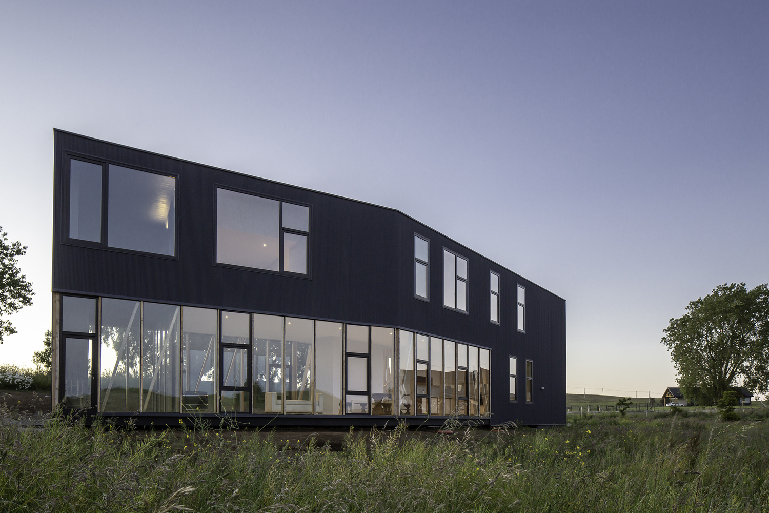 Standing on corrugated steel panels, the upper level’s opaque facade is a contrast to the bottom’s array of floor-to-ceiling halls. It offers privacy for the sleeping quarters, while the utter transparency of the ground floor makes for unbeatable views of the enveloping landscape. Pine and cypress pillars dot the space abundantly, with glazing on the windows, to boot.