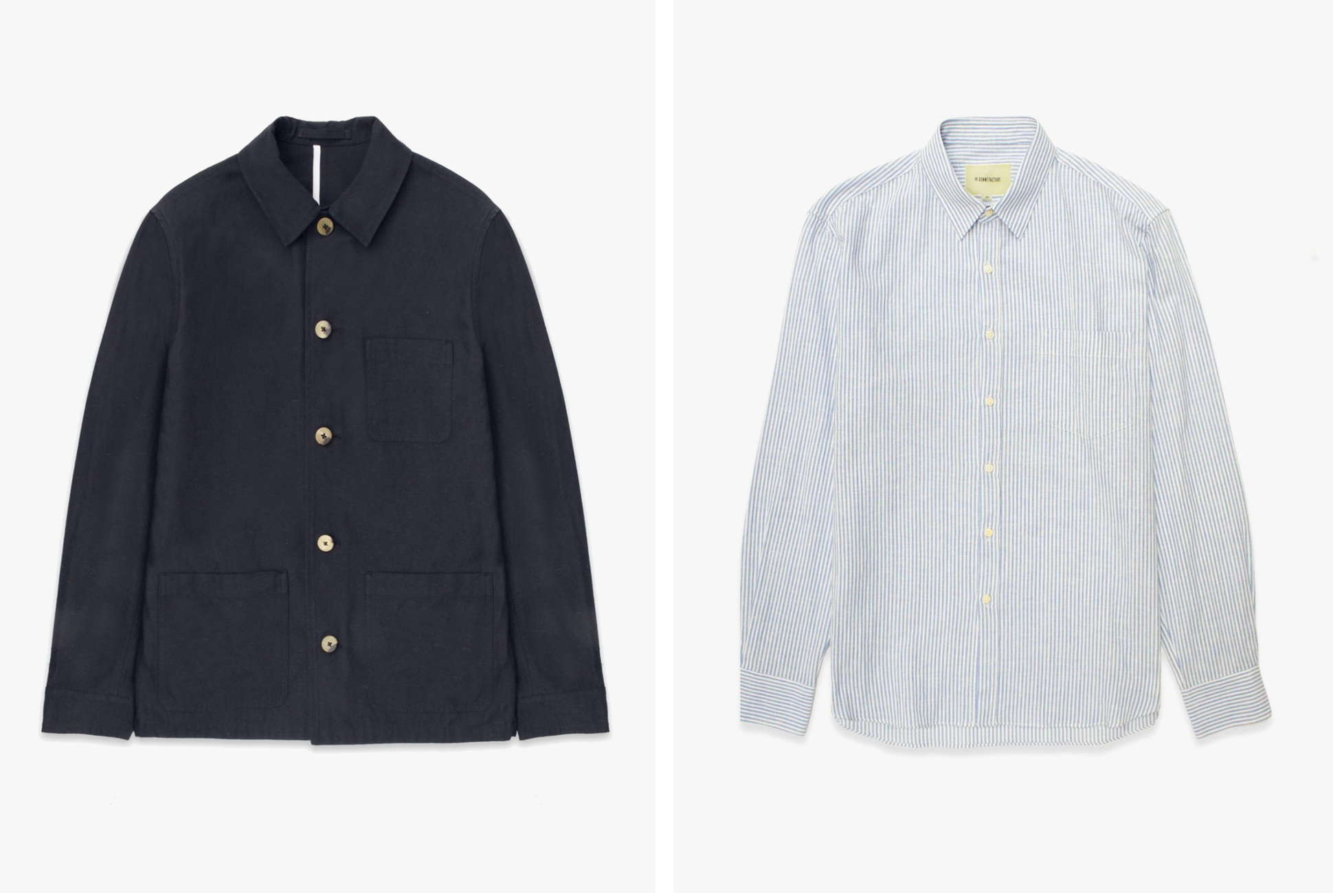 I like the oversized Grandad raincoat in Japanese typewriter cotton canvas. I also like the undyed Pima cotton knits and the cream slubbed Japanese cotton work suits.