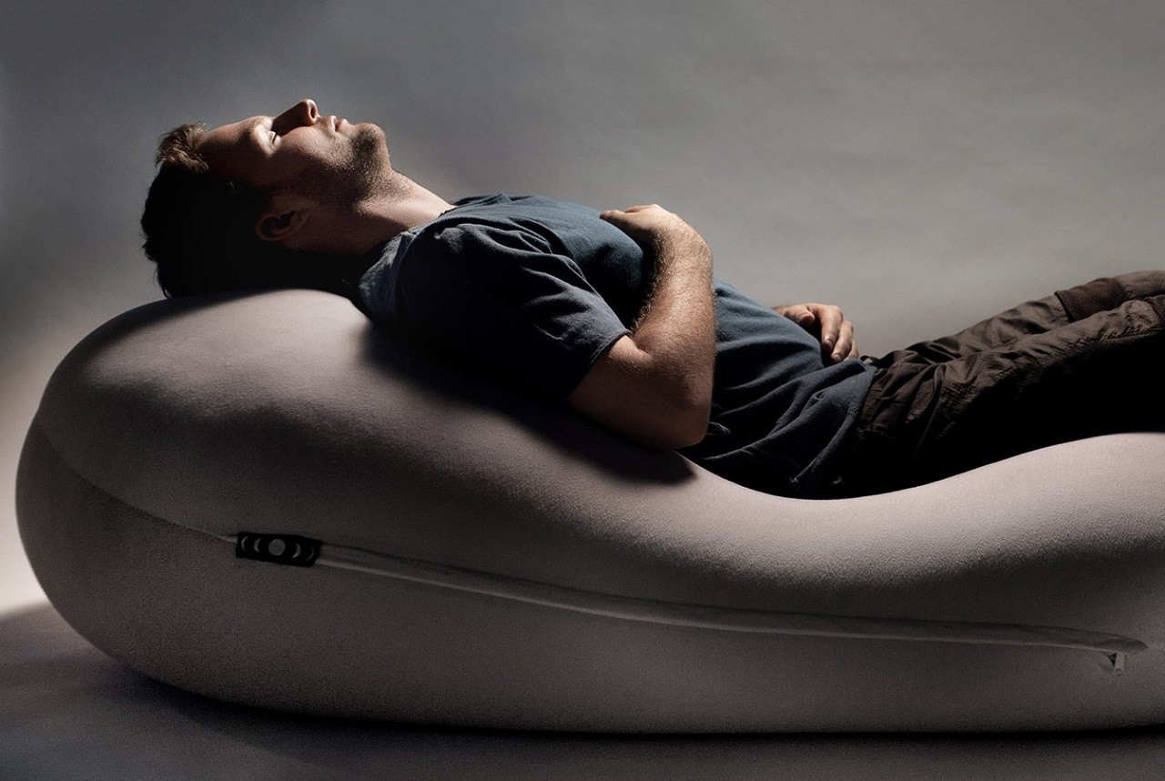 Designed to mimic the therapeutic feeling of Flotation Therapy (a powerful practice helping people who suffer from stress, anxiety, insomnia, PTSD, and ADHD), this couch with micro-cushions can be used like a chair, recliner, or nap pod, providing personalized, perfectly even support.