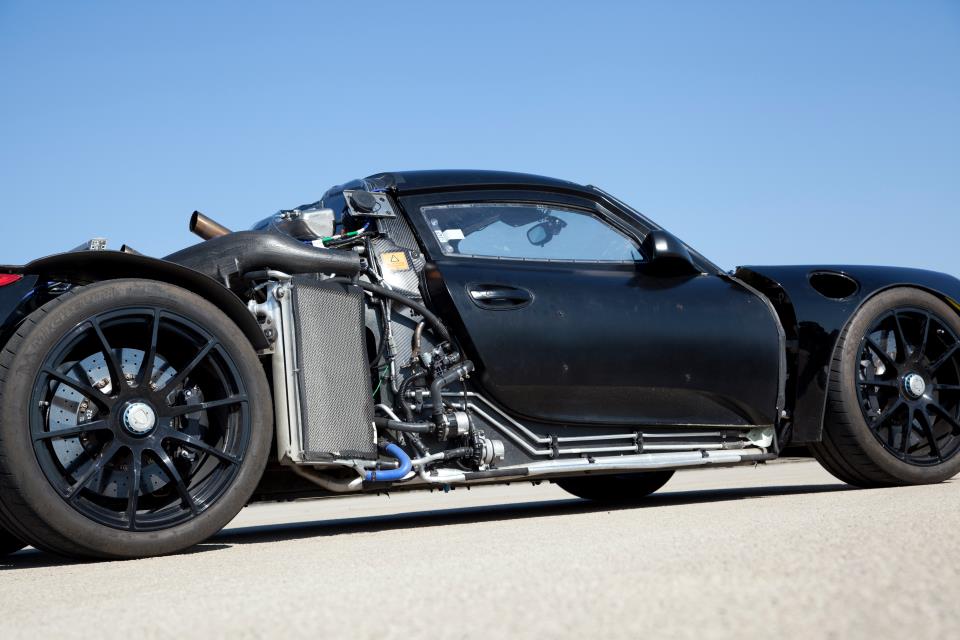 Super sports car of tomorrow! More than half of the Porsche 918 Spyder’s development time has been completed. Testing its rolling chassis at Nardo, Italy.