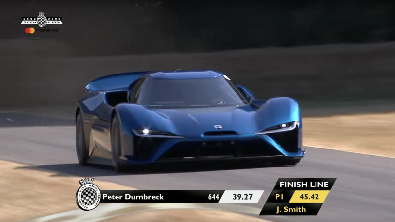 The Volkswagen I.D. R wasn’t the only electric vehicle to set a record at the 2018 Goodwood Festival of Speed. Chinese startup Nio showed up with its all-electric EP9, piloted by Peter Dumbreck, for the supercar shootout, and the car made a splash of its own, with a hill climb time of just 44.61 seconds.