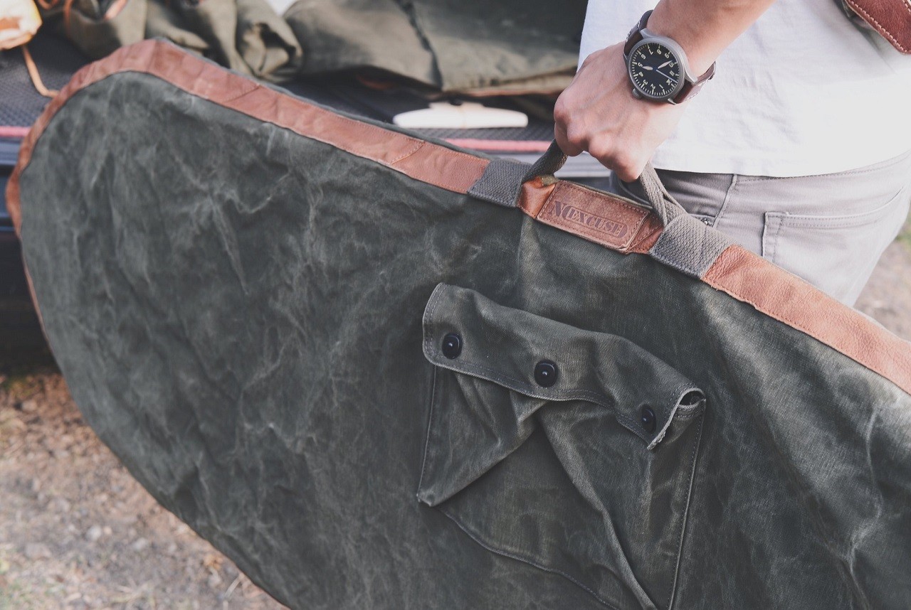 Drawing inspiration from a simple & reliable soldier’s duffle, Taiwan-based brand No Excuse Co. has crafted the Military Surfboard Bag–an oversized pouch that’ll keep your ‘speed egg’ protected for years while developing a unique patina in time.