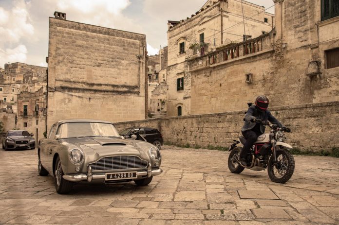 The legendary DB5 appeared in several Bond movies over the last decades – hence it’s no surprise to see the Aston Martin once more as brave battle partner of 007. This time the car chase scene was filmed in the historic centre of Matera, Italy as well as the ancient Sassi which is a UNESCO-protected cave dwelling.