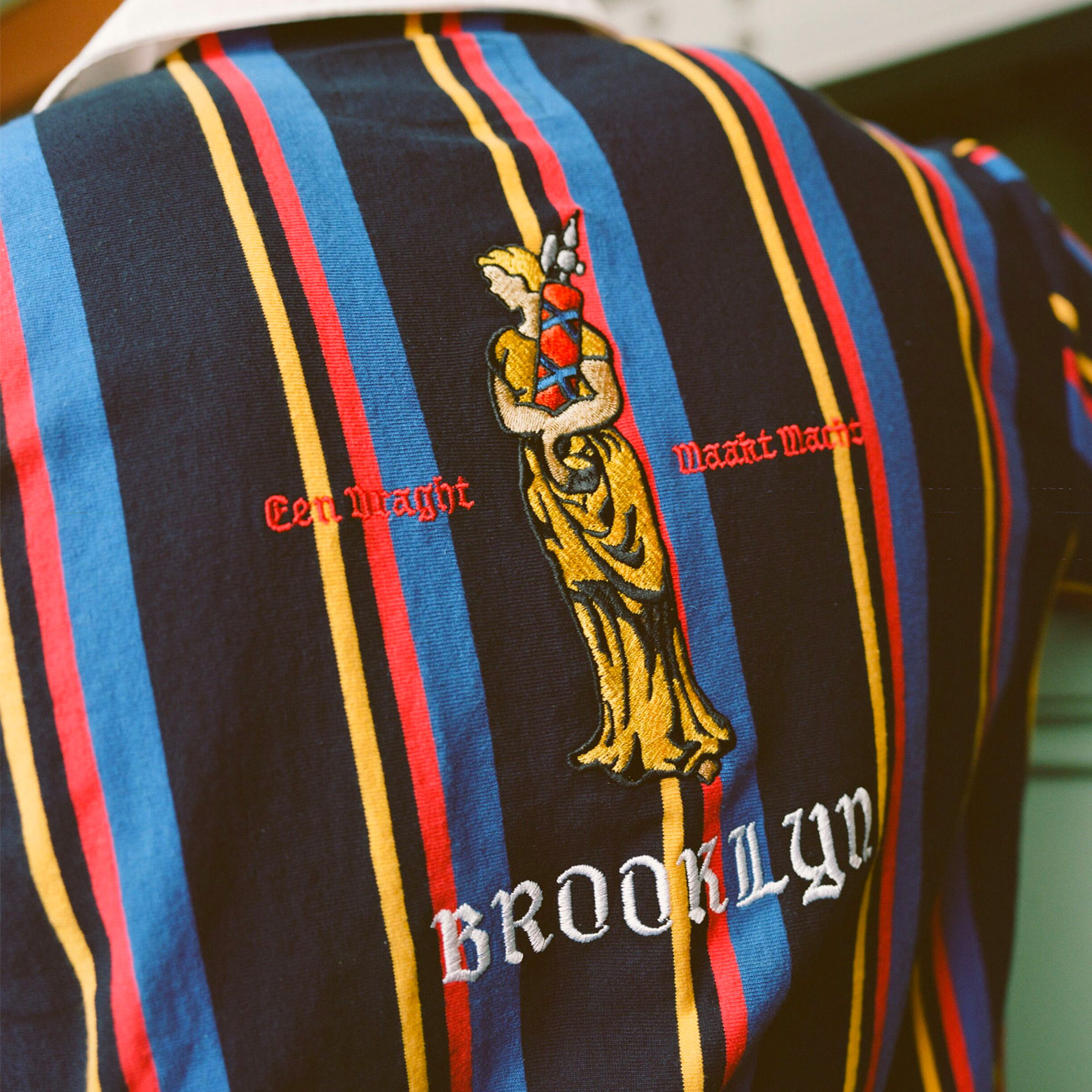 The same logic applies to the rugby shirts, whose backs feature large-scale versions of the crests. “There’s only so many things you can wear where big and loud really make sense and don’t look goofy,” Babenzien added. “A rugby shirt is definitely one of those things, so you take advantage of that.”