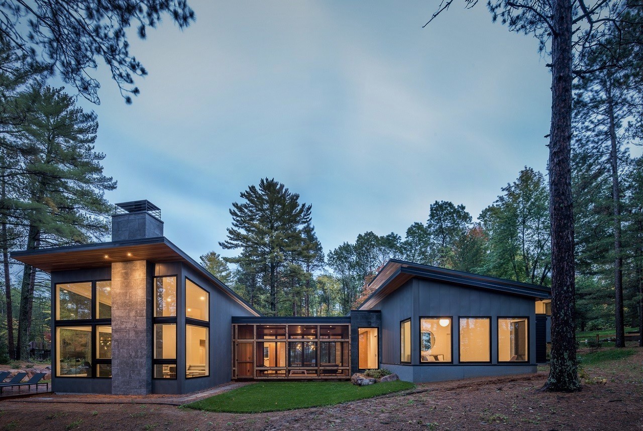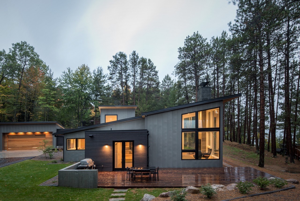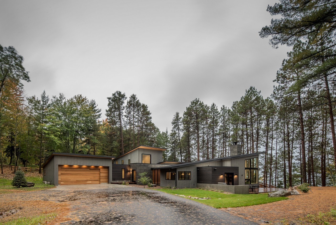 Nestled into a natural swale in Northern Township of Beltrami County, Minnesota, the Northern Lake Home features a subtle darkened exterior, allowing it to blend perfectly into the surrounding forested landscape.