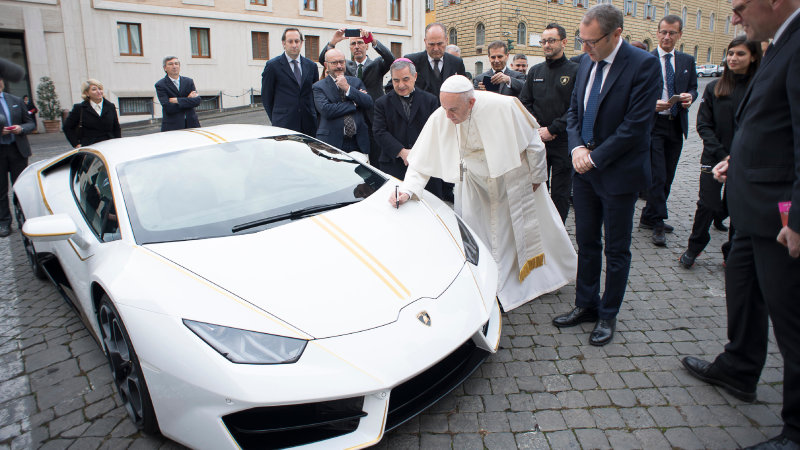 The new Popemobile, it’s not. Fittingly, according to Catholic News Agency, it’s the seventh version of the Huracán, the Italian company’s entry-level model. It’s set to be auctioned at RM Sotheby’s on May 12, 2018, with orders from the Holy See to split the proceeds between three charitable causes: restoring villages on the Nineveh Plain in Iraq, helping victims of human trafficking and supporting missionary work in Africa.