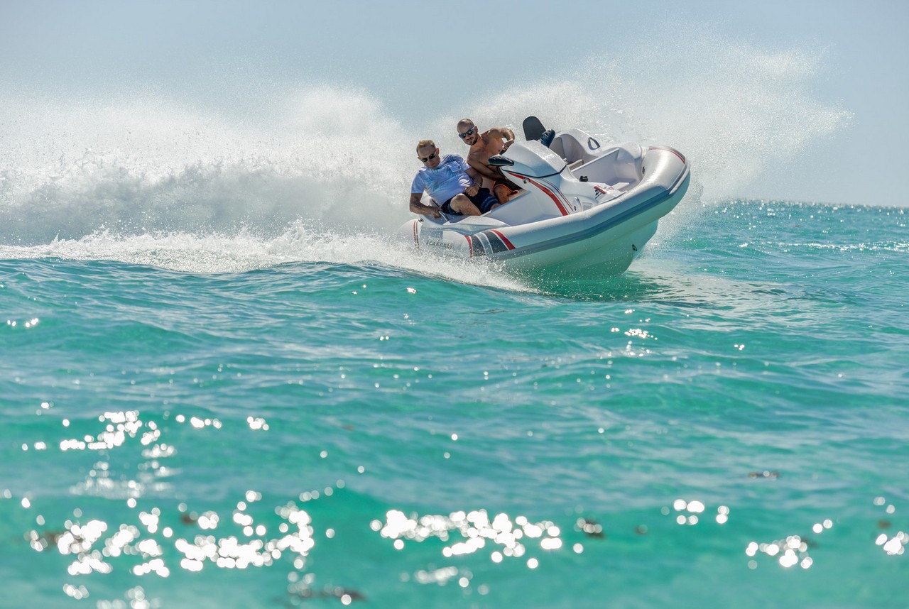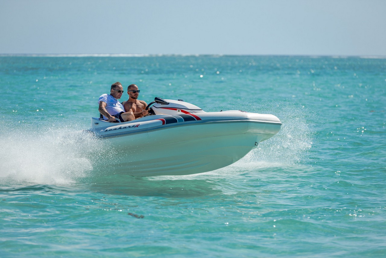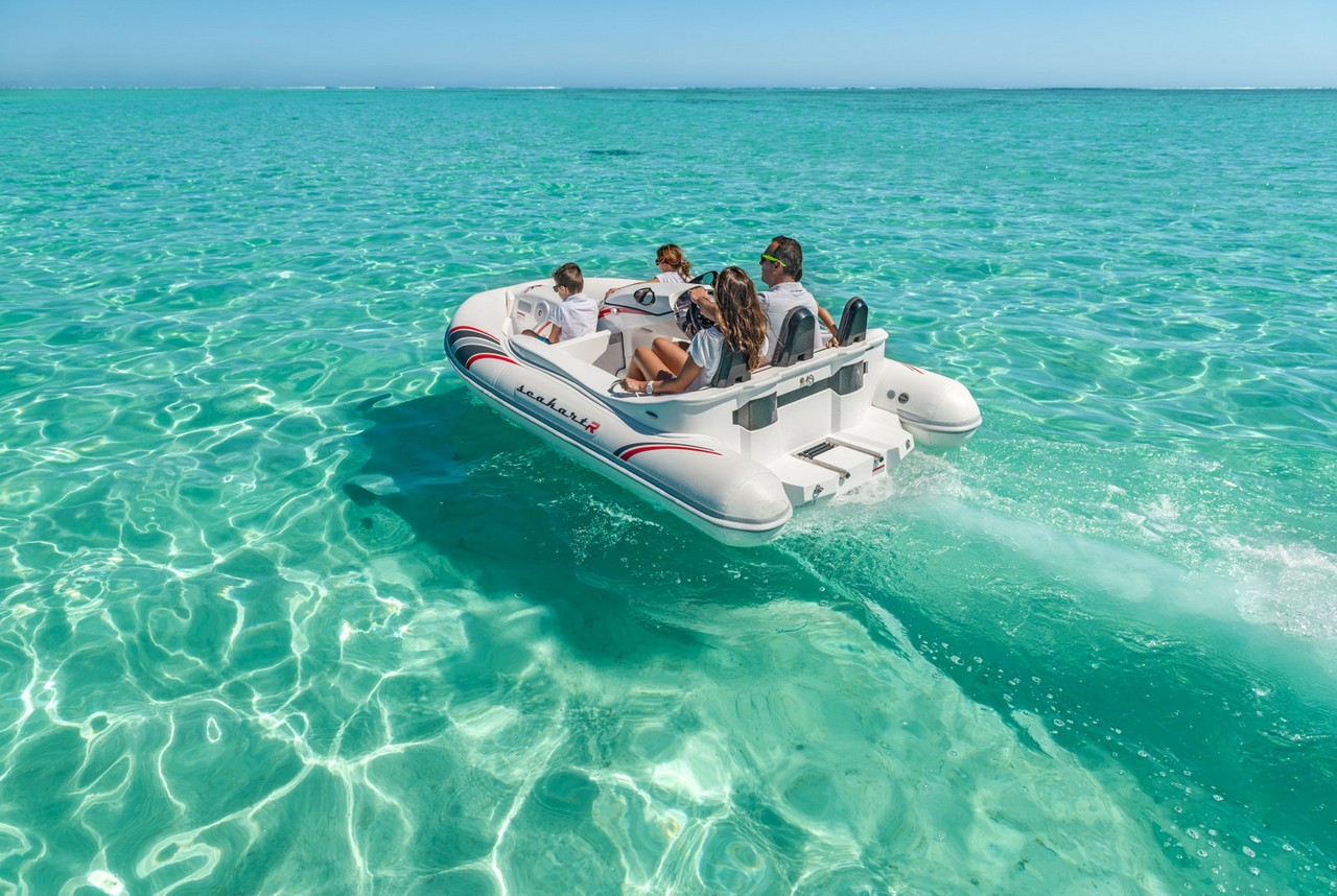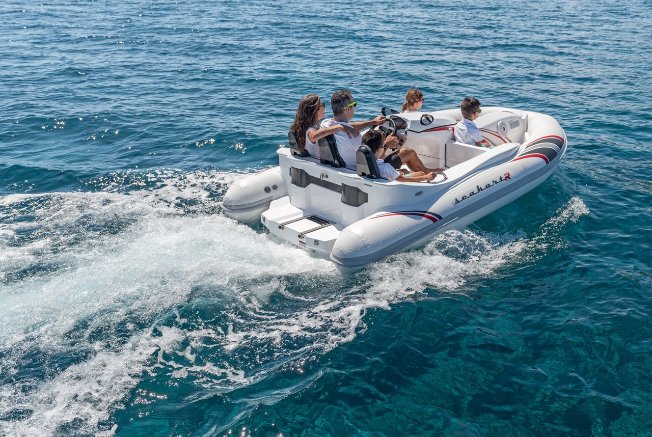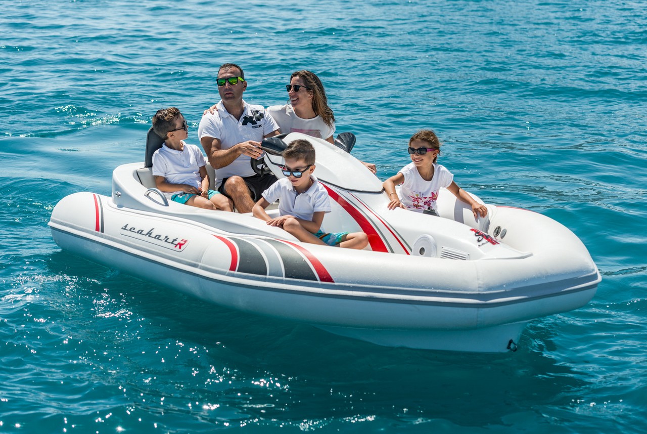 It might be small and family-friendly, but underneath that cute appearance lies a powerful boat. Combining the speed & handling experience of a jet ski with the safety & comfort of an inflatable boat, the Seakart 335 Hybrid Watercraft is perfect for both cruising around with the family and zipping across the water at toupee-raising speeds with your buddies.
