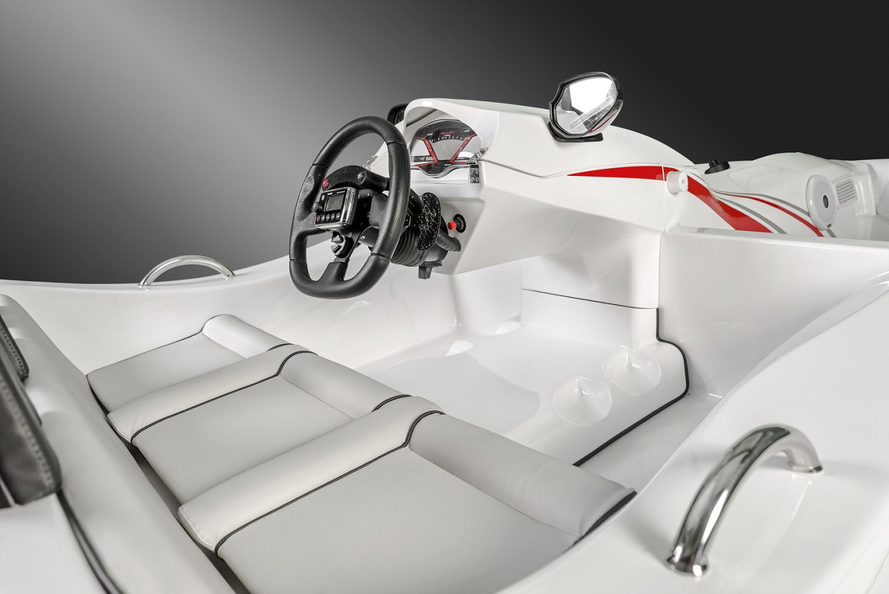 The Seakart can be delivered anywhere in the world and it comes standard with under seat storage, 12v DC socket, removable sealed upholstered seating, piped deck drains, automatic fire extinguisher, bathing ladder, and more. Custom options include different colors for the inflatable tubes, custom upholstery, carbon parts, LED deck lights, and underwater lights.