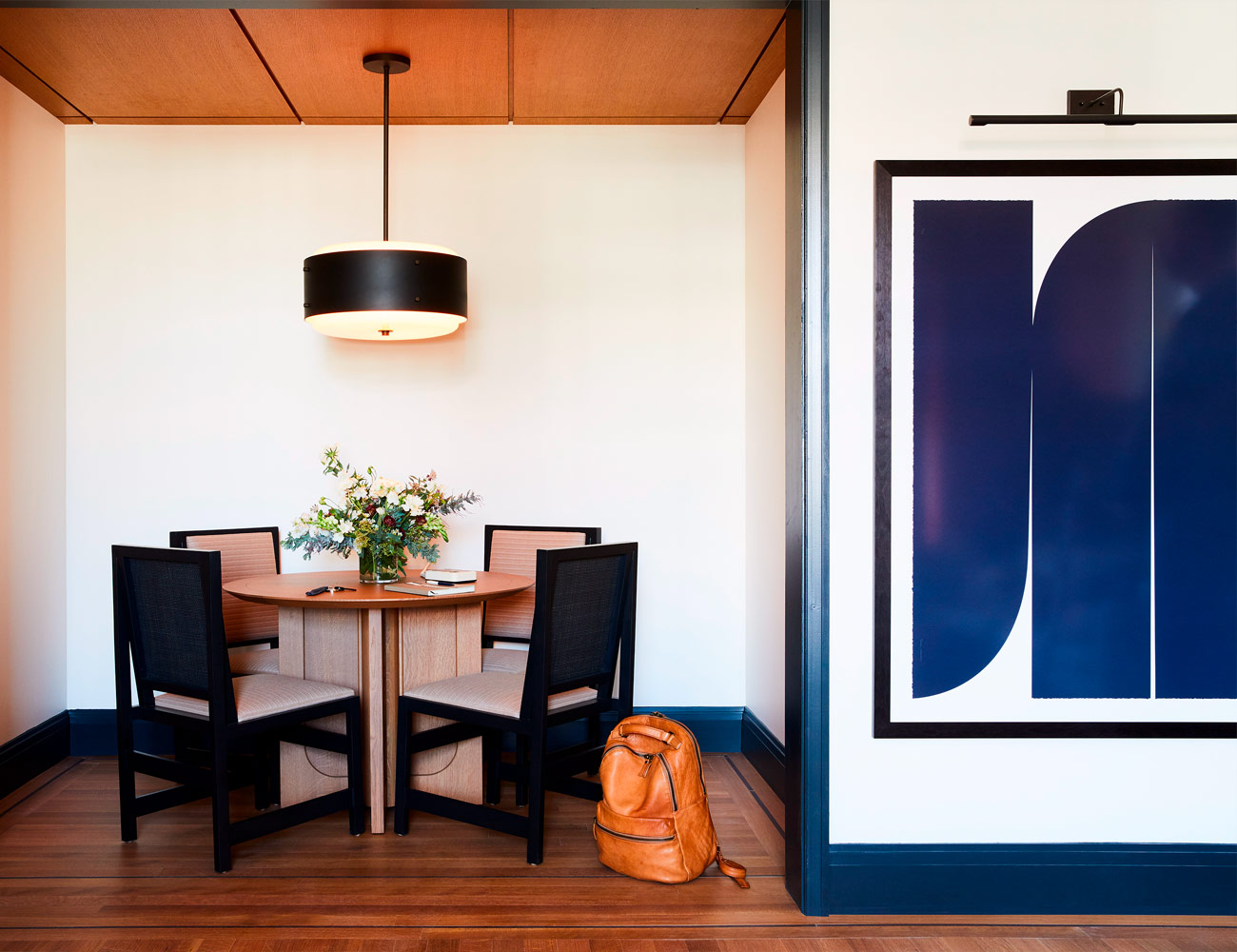 The interior design work — guest rooms, lounge areas and restaurants — was handled by Gachot Studios and Kramer Design Group, a job that included creating 50 unique configurations for 10 unique room booking options.