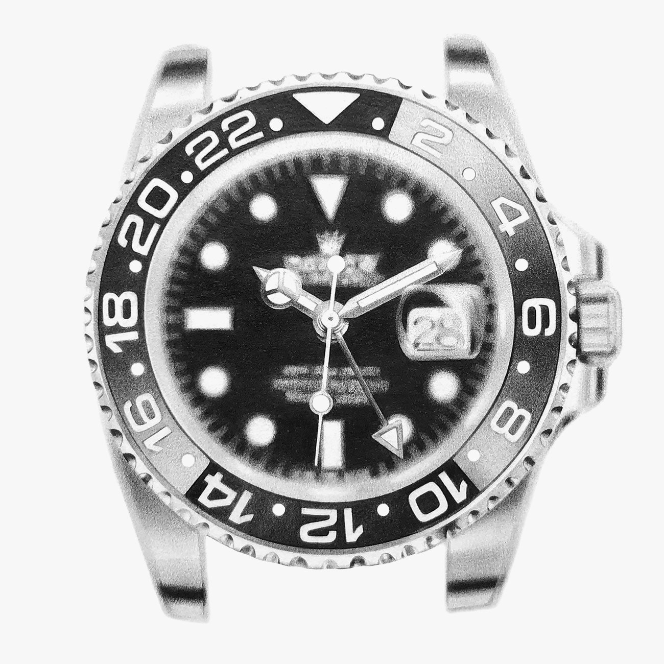 A “GMT” watch refers to a timepiece that displays two time zones concurrently (one of which must technically be on a 24-hour scale). “GMT,” or Greenwich Mean Time, is the mean solar time observed at the Greenwich Observatory in London, England, and the standard by which all other time zones are calculated. The original example of a GMT watch is the Rolex GMT Master, developed in the 1950s for use by Pan Am aircrews to monitor local and Greenwich Mean Time simultaneously. A modern GMT watch generally uses a fourth, 24-hour hand that can be used to track a second time zone, often in conjunction with a 24-hour rotating bezel (certain models can even track a third time zone).