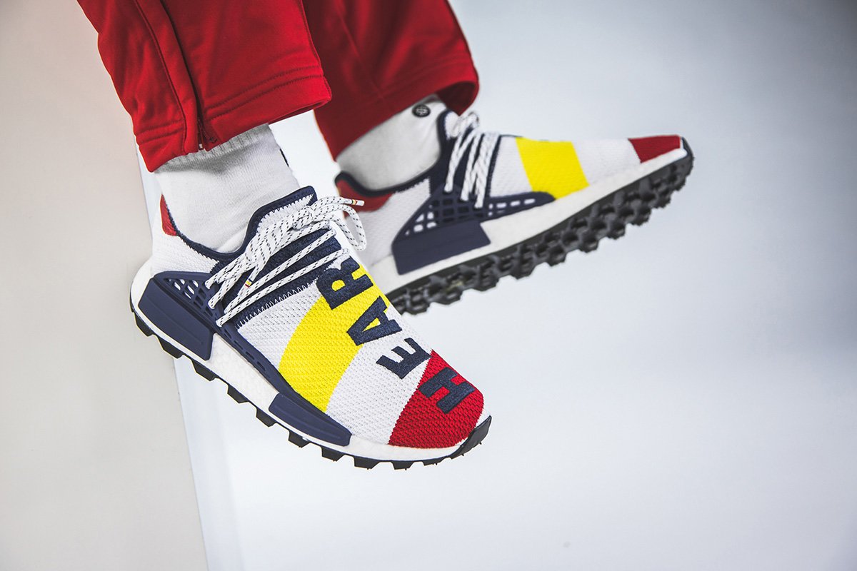 But those leaks didn’t include the “HEART” and “MIND” embroidered text throughout the forefoot, so this is technically still the first time you’re seeing Adidas’ Tennis HU and NMD Trail, created in collaboration with Billionaire Boys Club plus legendary producer and style icon Pharrell Williams.