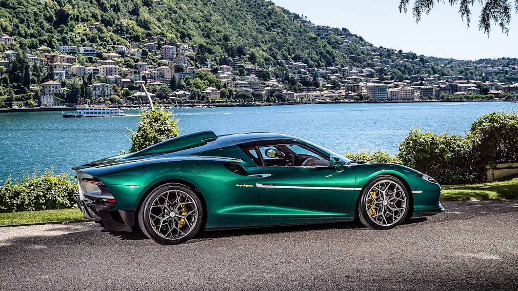 Like the race car, the Hunter’s chassis is a steel tube-frame setup wrapped in carbon fiber body panels. The suspension is a double-wishbone setup front and rear with adjustable dampers. 17-inch wheels with 35-inch off-road tires are standard; behind them you’ll spot six-piston Brembo brakes. The Hunter street car also gets an extra 50mm of suspension travel to improve ride quality over the racer’s. The exterior may look a bit like Pikachu auditioning for a “Cars” sequel, but at least you can tell all your friends that it was penned by Ian Callum. That means it’s basically a Vanquish, right?