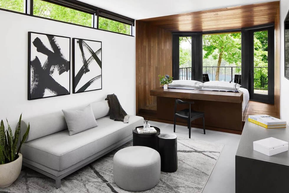 These modular elements serve as climbing, balancing, and exploration structures that encourage creativity and play among the children. They urge the children to use their imagination in creating routes and express their ideas on play and design. There are also yellow-studded red LEGO block-like seating surrounding the building’s glazing.