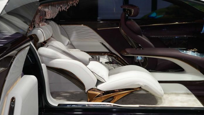 Very interesting concept car from China’s oldest car manufacturer Hongqi. The car has 3 seats, one at the front and two at the rear. There is a chandelier hanging from the roof and there is no steering wheel – a full autonomous vehicle.