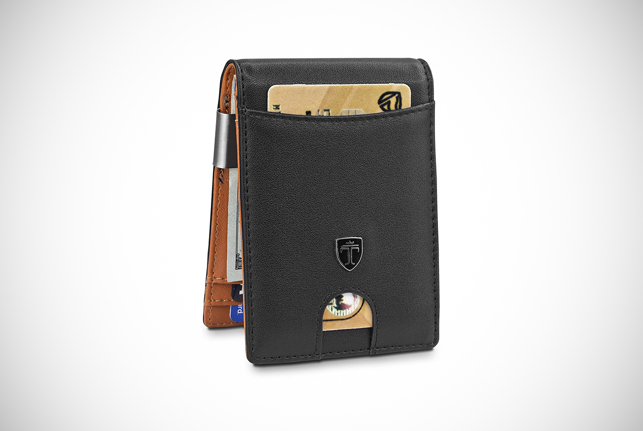 RFID-blocking is one of the key features of this robust and rather futuristic-looking slick card holder and wallet. The Martrams wallet even incorporates a slightly different material in combination with the aluminum that so many feature – carbon-fiber. This not only gives it a cool AF and appealing look, but also lends its lightweight properties to the money and card-carrying option.