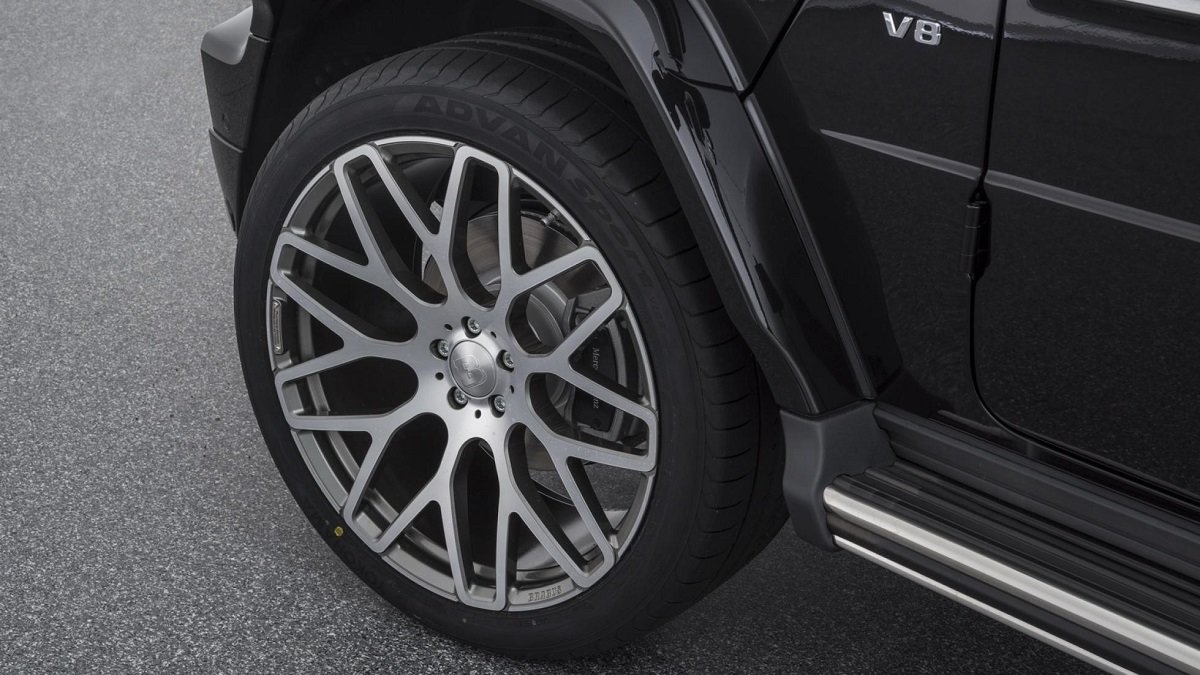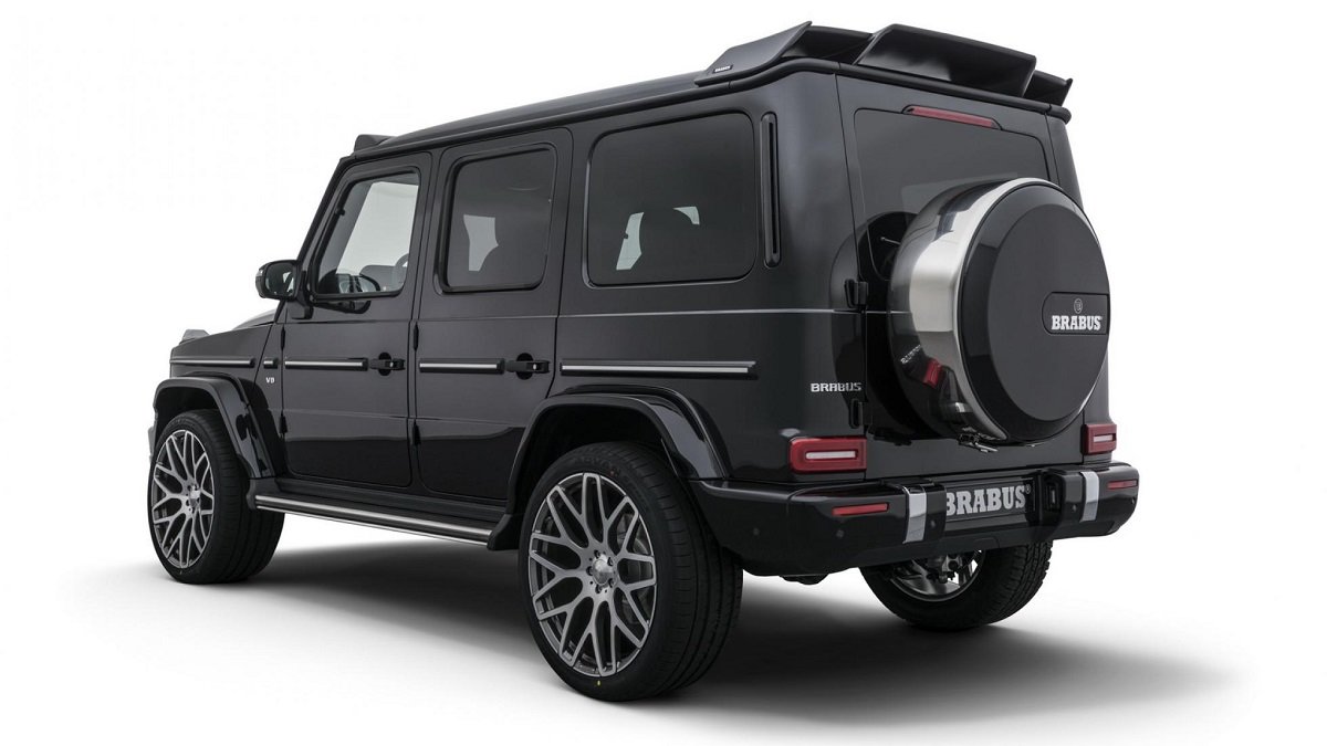 Nope, wrong … this is the brand new BRABUS 900 ROCKET EDITION, and since it’s based on the Mercedes G63 SUV, we are talking about a car with as much aerodynamic styling as a brick house … well, that might be a bit harsh, but you get the idea, this is a 2,560 kgs (5,644 lbs) heavy SUV, and she’s wide and tall too, 204 cm (80.3 in) wide and 462 cm (182 in) long, riding on massive 24-inch wheels, 10-inch wide at the front and a girthy 12-inch wide at the rear.